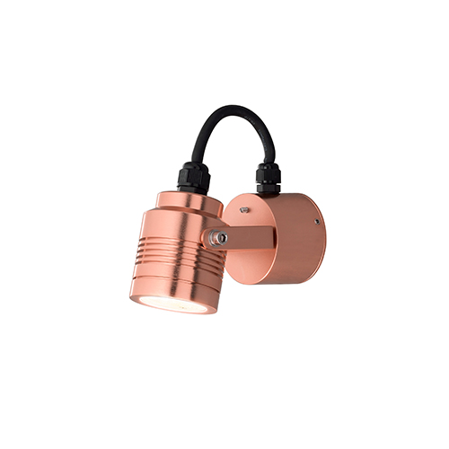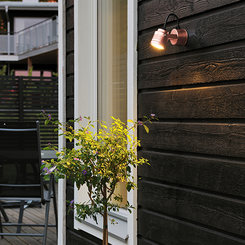En enkel och klassisk vägglykta gjord av aluminium. Lampan är riktbar med belysningen nedåt.