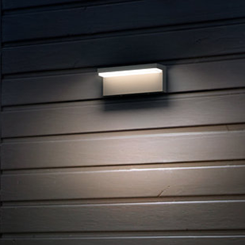Elegant L-formad vägglampa från Philips med belysningen riktad nedåt. Sprider ett varmvitt LED-ljus på väggen.