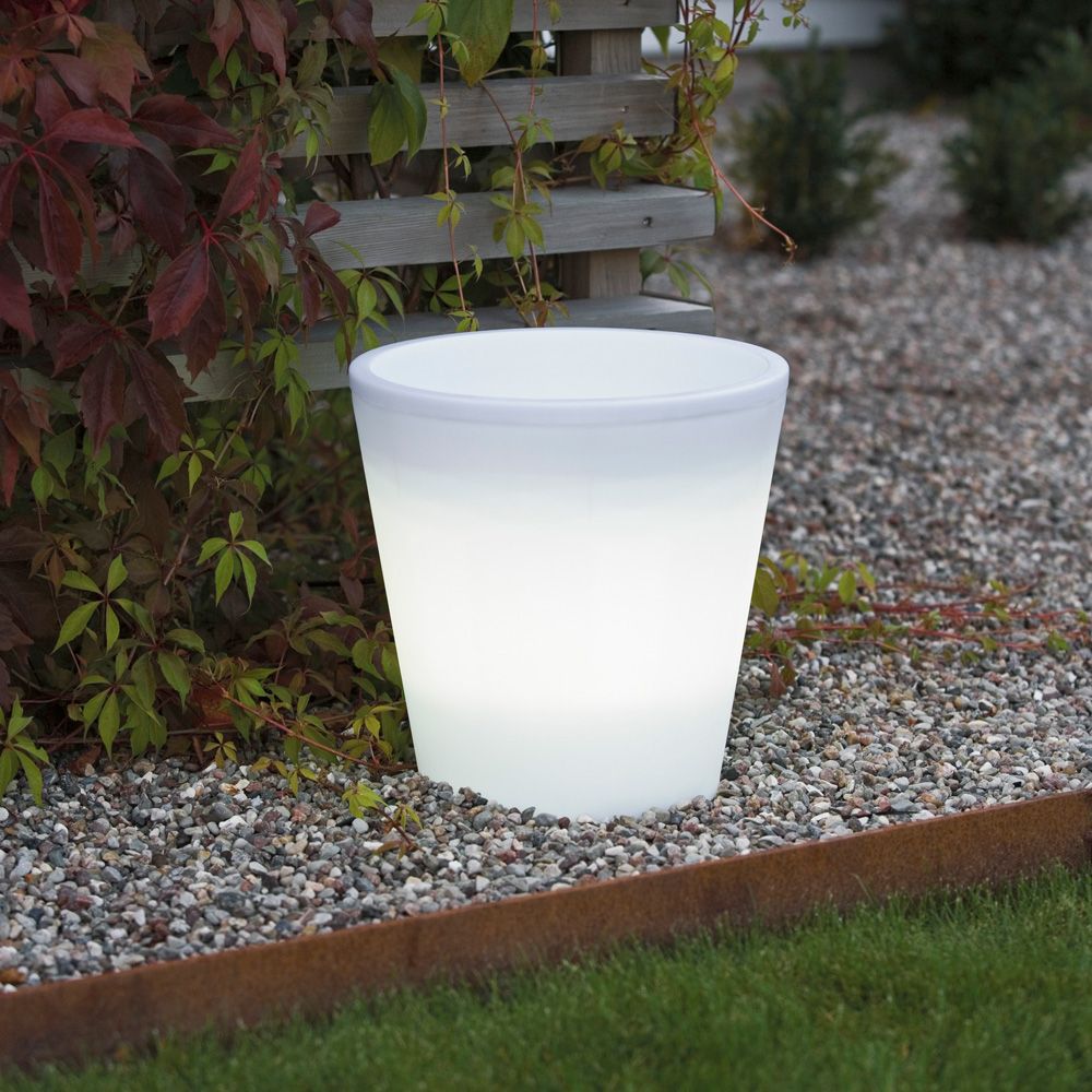 Blomsterkrukan innehåller 15 st LED - lampor som ger ett varmvitt ljus.