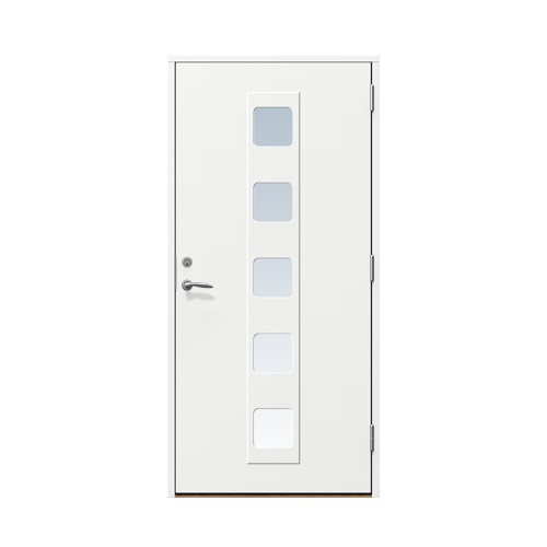 KULÖR Vattenbaserad målningsteknik. Vi rekommenderar inte ommålning av ytterdörren eftersom glaslist och dörr är i olika material och kan reagera olika på den färg som används. Observera att en ytterdörr i mörk kulör ska monteras skyddad från direkt starkt solljus och hög värme för att undvika skevhet och solblekning.