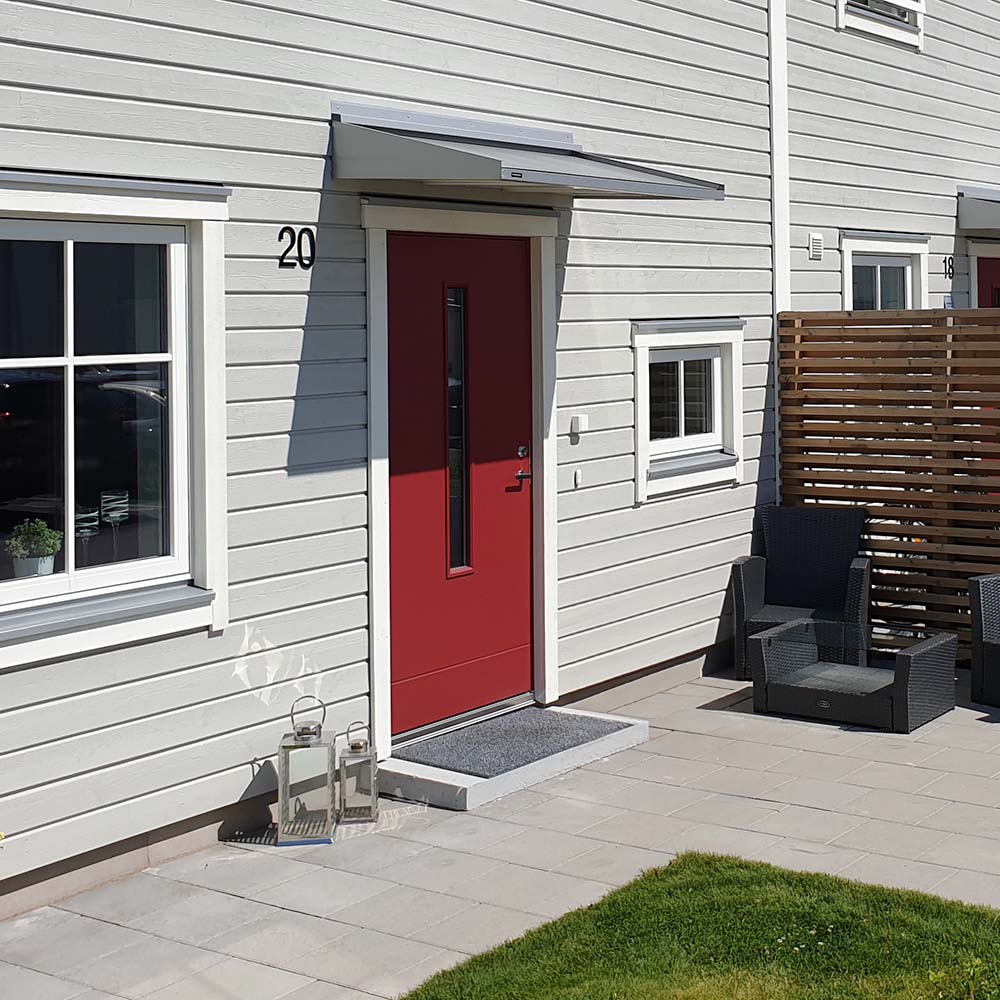 Ett diskret entrétak som smälter in i fasaden. Simple classic small passar bra både på nybyggda och äldre hus.
