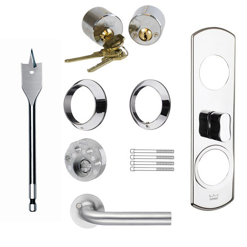 Ett komplett lås och beslagspaket i krom som passar till våra entrédörrar till villa samt till Altanytterdörr säker. Dörrhandtag i stilren design.