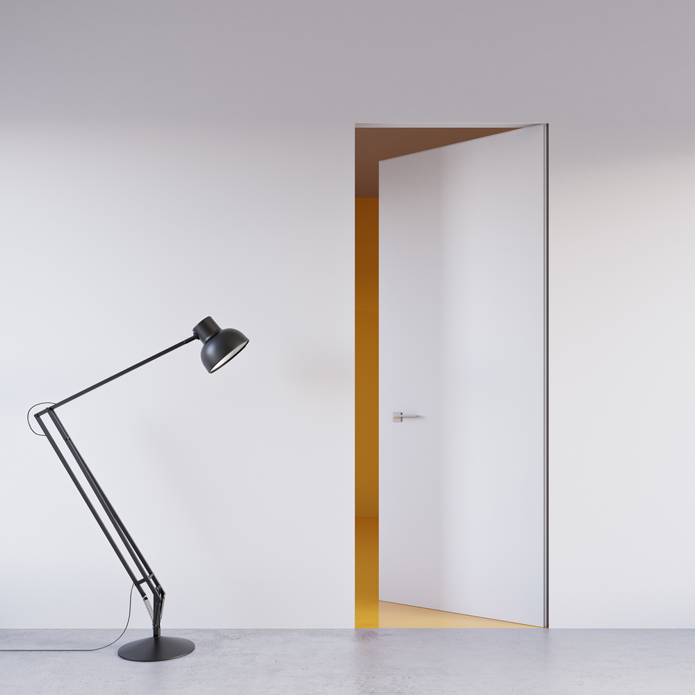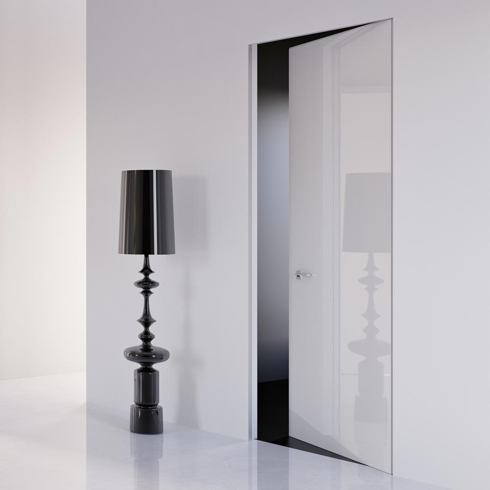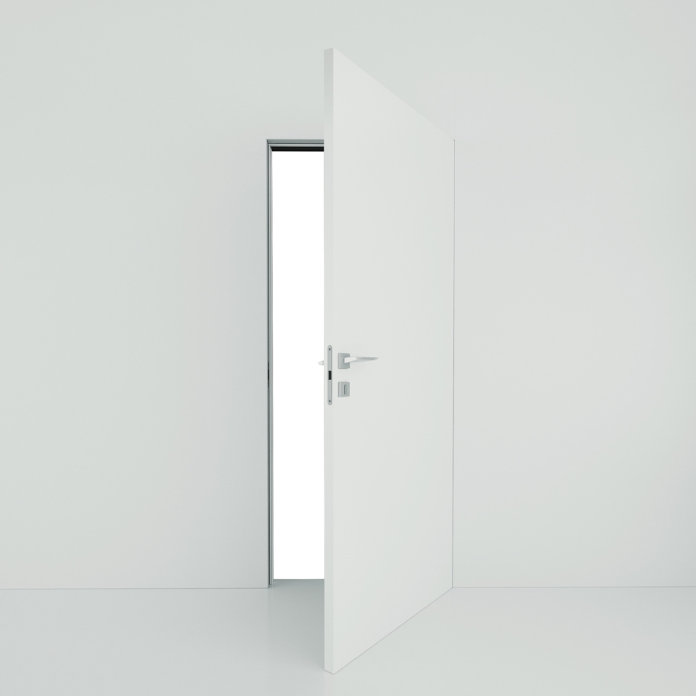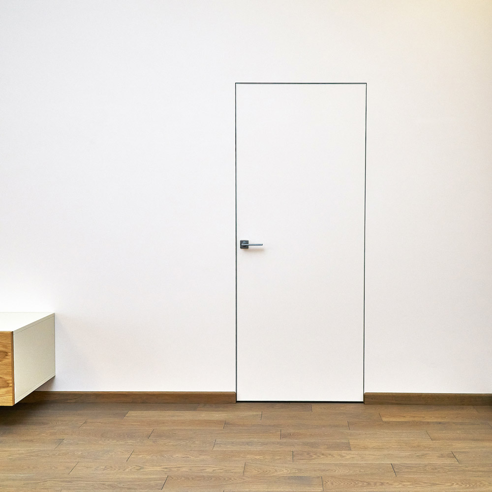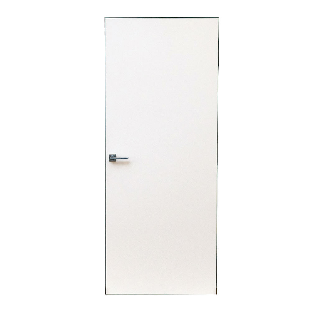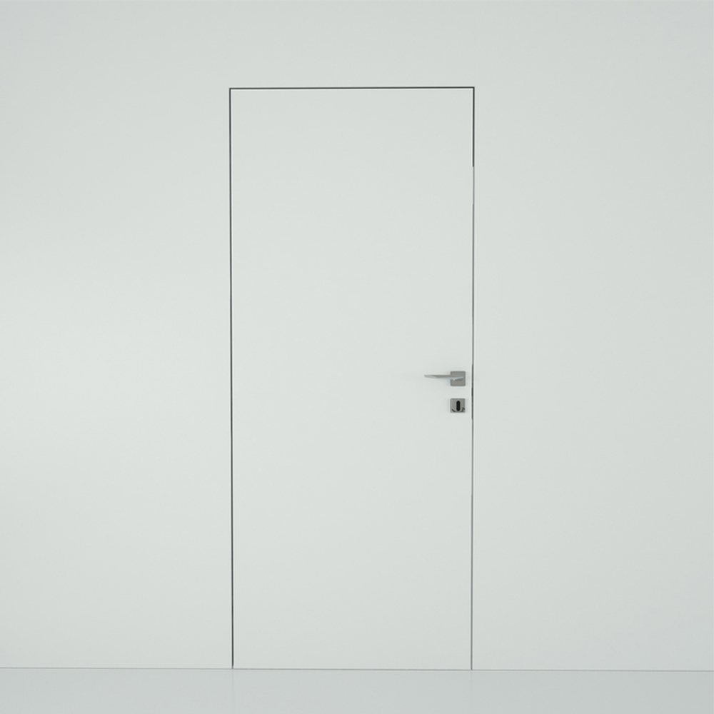 Våra innerdörrar med dolda gångjärn ger ett rent och avskalat utseende. Detta gör att dörren blir en del av väggen, inga foder som stör. Finns både inåtgående och utåtgående, vänligen notera bilden för att få rätt hängning. Dörrarna har en speciell faner för målning eller tapetsering. Detta gör att man kan måla med samma väggfärg så dörren smälter in i väggen.