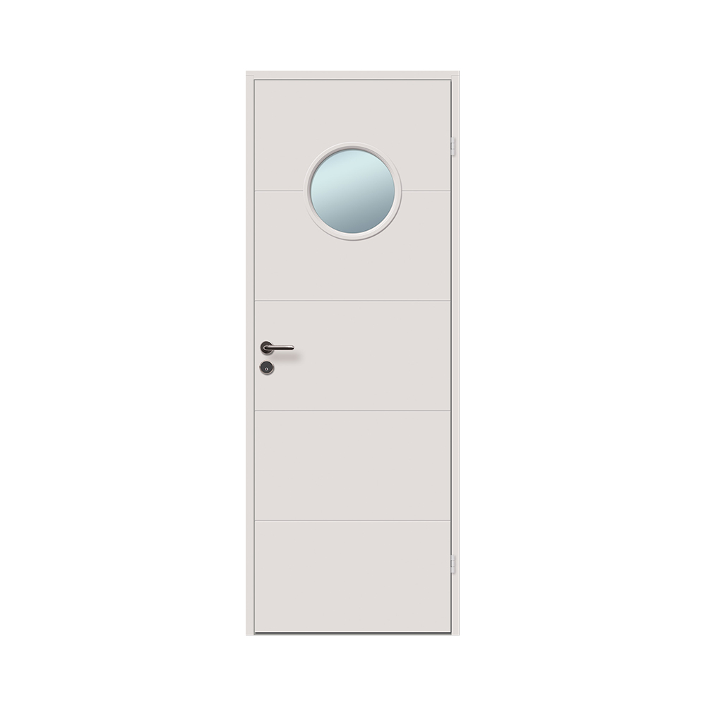 Ingarö Grunda Design är en innerdörr med tvärgående spårfräsning och ett trevligt båtfönster.