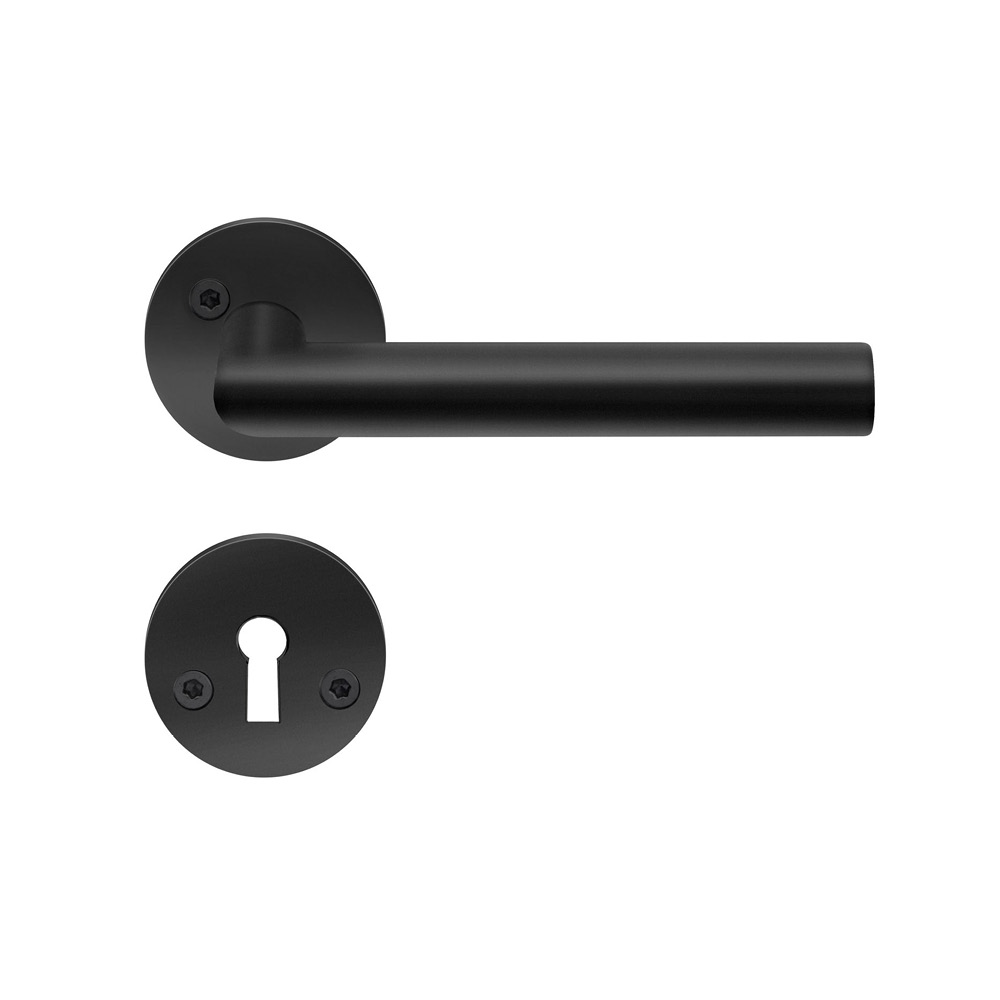 Paketet innehåller Handtag och nyckelbrickor för båda sidor av dörren. Handtaget passar till Innerdörrar med tjocklek 38-45 mm.