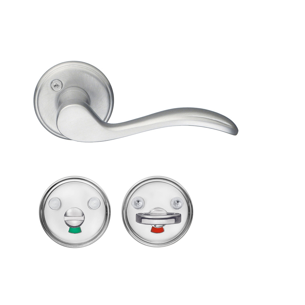 Ett stilfullt innerdörrhandtag och toalettvred i klassisk design. Dessa prisvärda handtag har en vackert vågformad design och en matt yta i borstad krom. Passar perfekt på innerdörren till toalett och badrum.