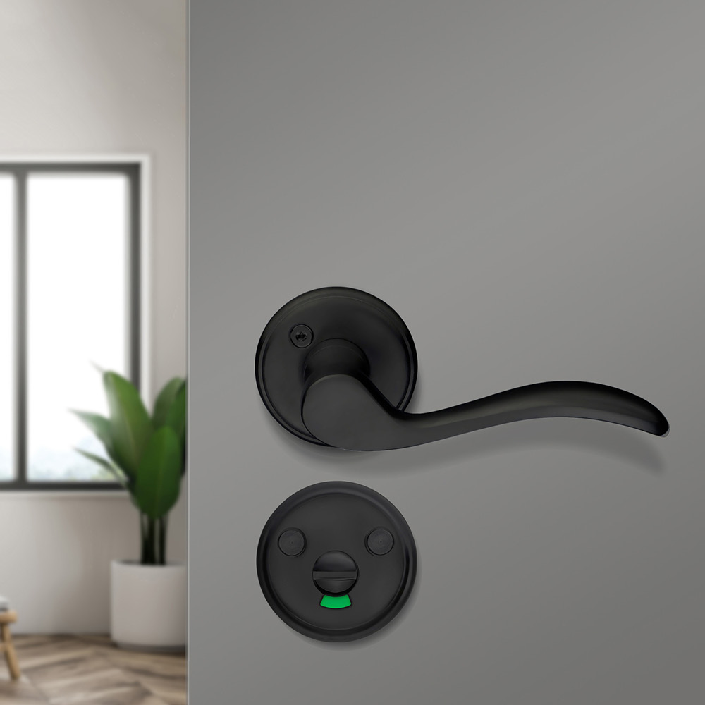 Uppgradera ditt hem med nya handtag till badrum och toalett. Dessa svarta innerdörrhandtag och matchande toalettvred har en traditionell design och en matt yta. Matcha gärna med handtag till dina övriga ytterdörrar.