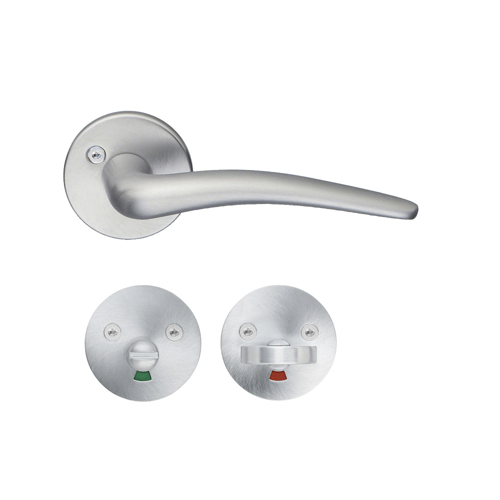 Prisvärt handtag med en slimmad design och en greppvänlig matt yta i borstad krom. Byt dörrhandtag på innerdörrarna till ditt badrum och toalett för att snabbt och enkelt få en ny känsla i hela ditt hem. Matcha gärna med samma handtag på dina övriga innerdörrar.