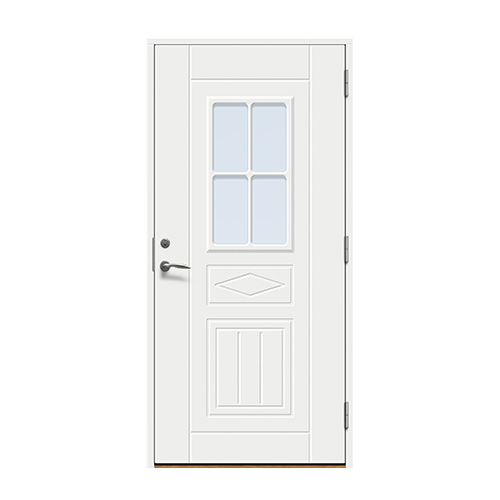 Salarp är en vitmålad dörr med ett klassiskt fönster inkl. fasta spröjs.