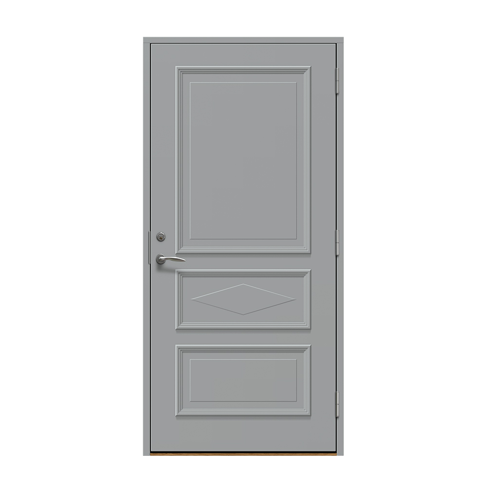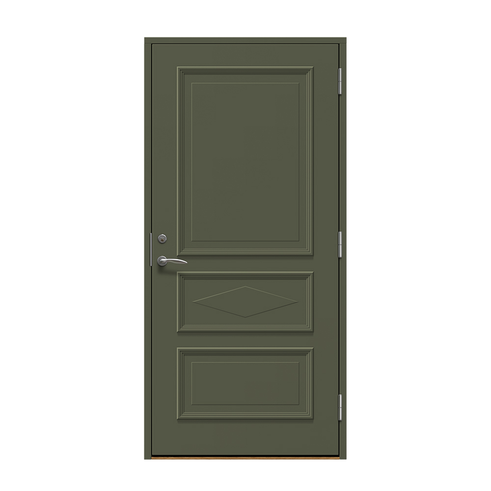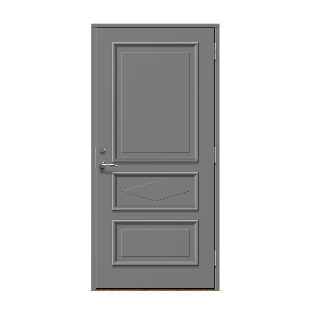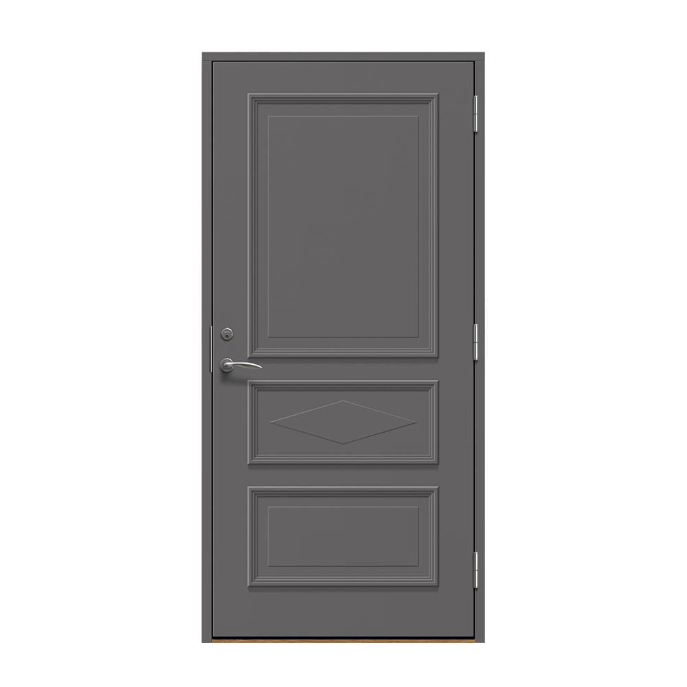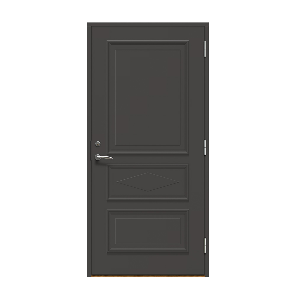 Alnarp är en tät entrédörr med en klassisk utvändig spårfräsning och en slät insida.