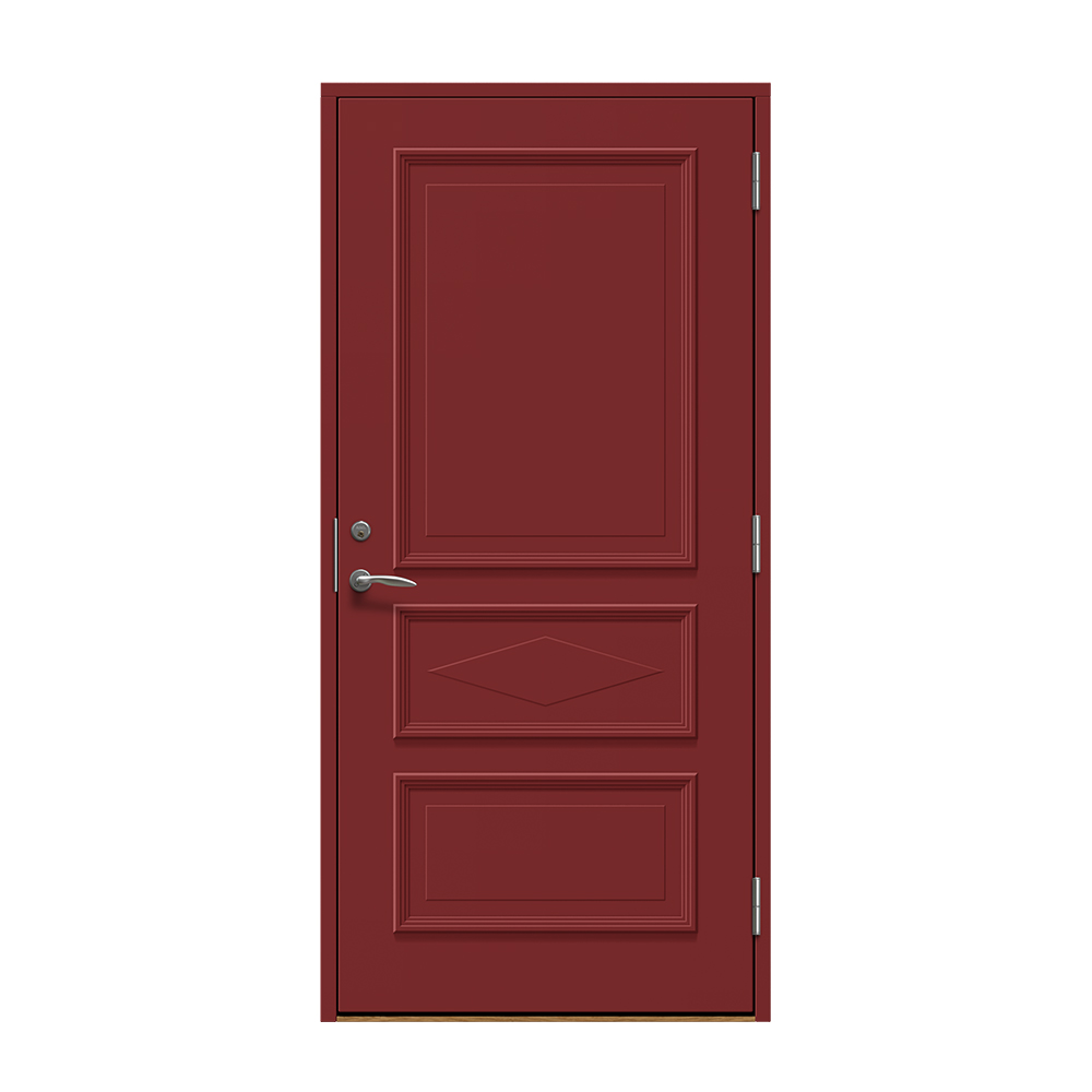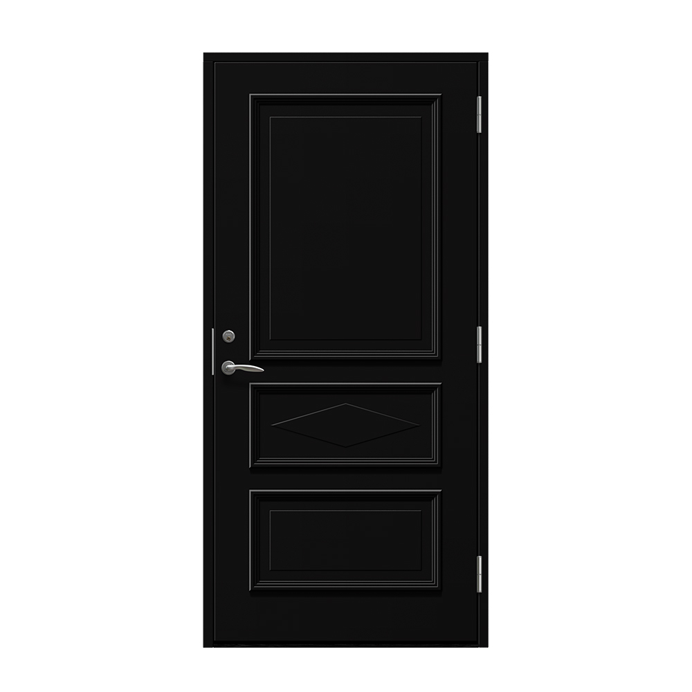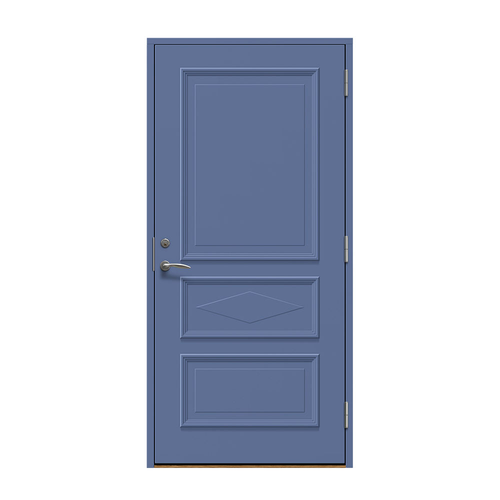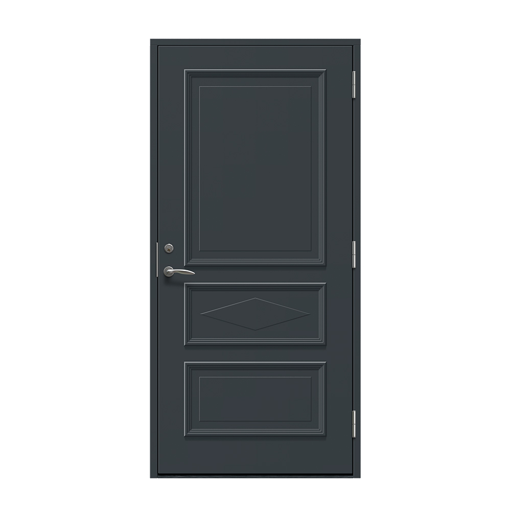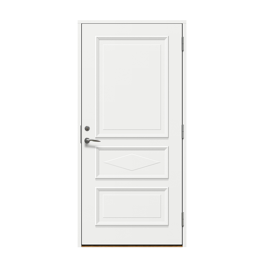 Alnarp är en tät entrédörr med en klassisk utvändig spårfräsning och en slät insida.