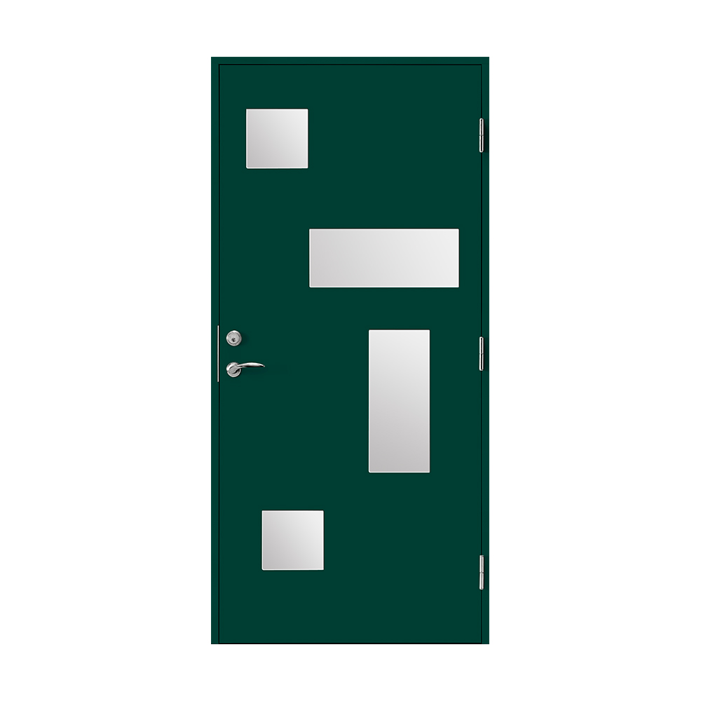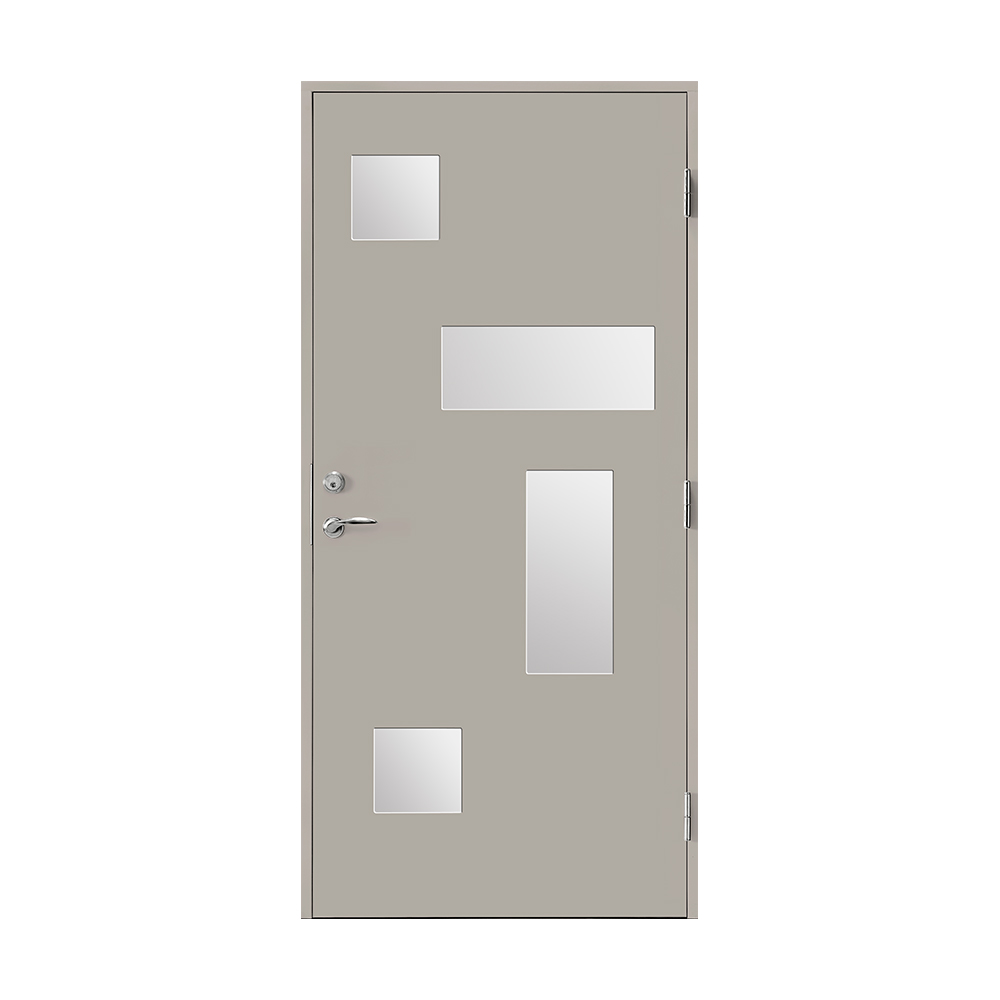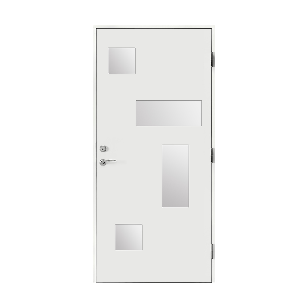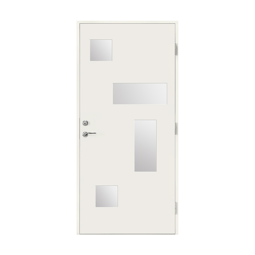 Aneby är ytterdörren med ett nytänkande formspråk. Dörren har flera mindre glasrutor av olika storlekar som ger ett jämt ljusinsläpp i din hall.