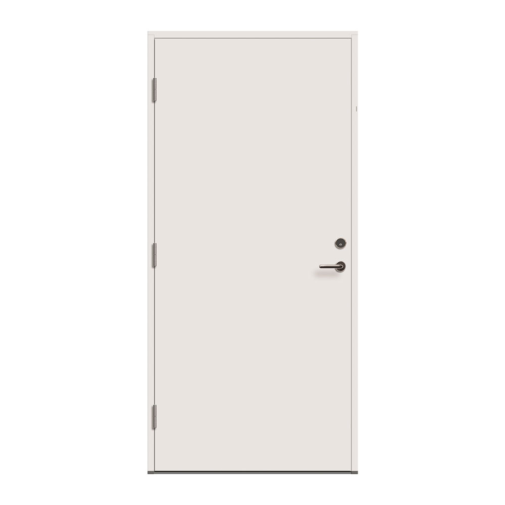 Det ingår inte något beslagspaket med dörrhandtag eller cylindrar till entrédörren, det köper du till efter dina egna val.