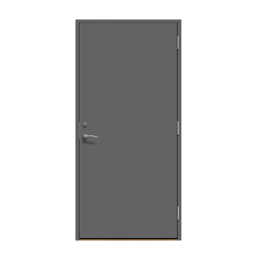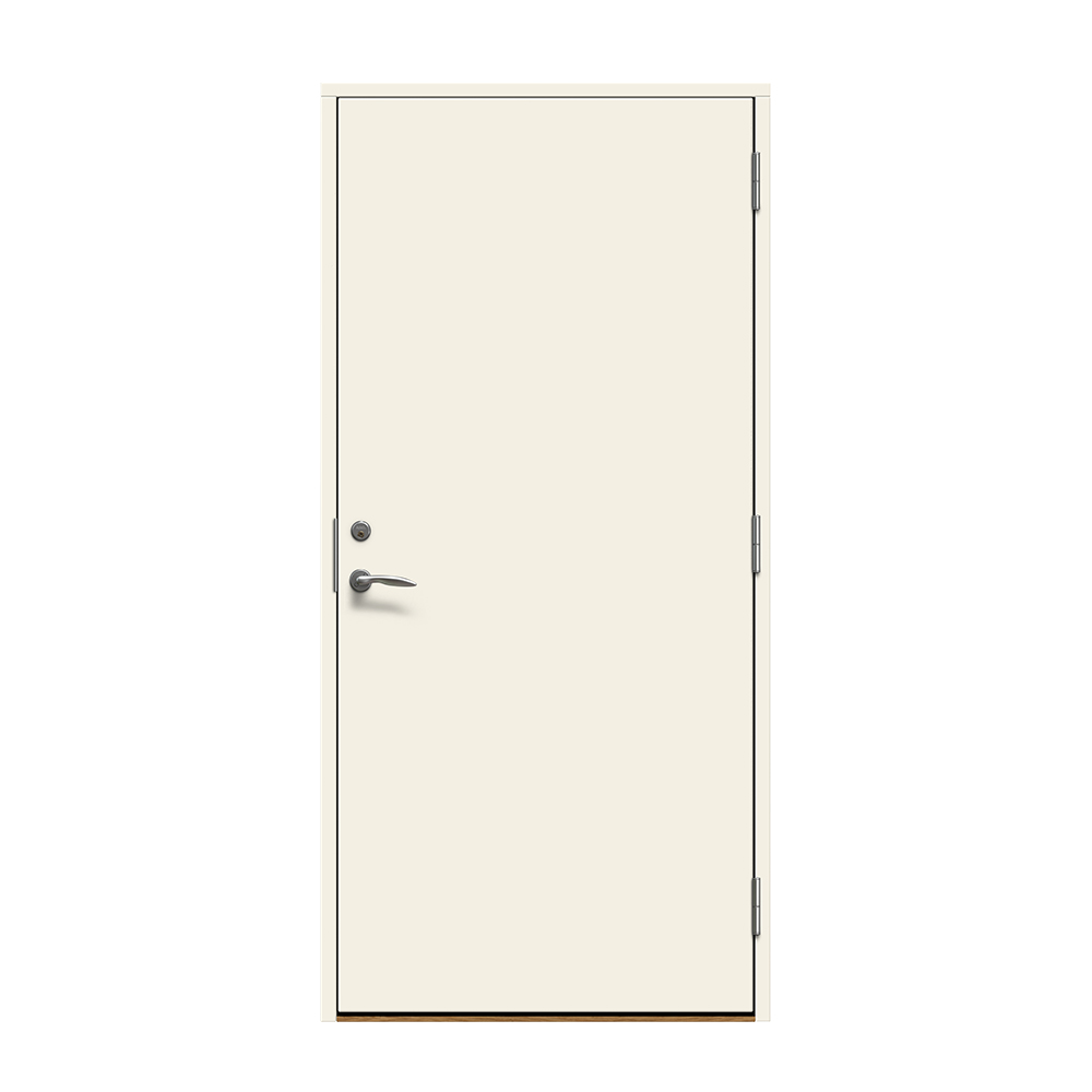 Dörren är täckt av en tålig faner. Behandlingen som appliceras på dörrens träfibrer gör att dörren tål extrema mängder vatten med minimal rörelse och svullnad. Dörren blir mycket tålig och färgen fäster bättre vilket ger längre underhållsintervall. Om dörren har fönster kommer glaset vara laminerat för extra styrka.