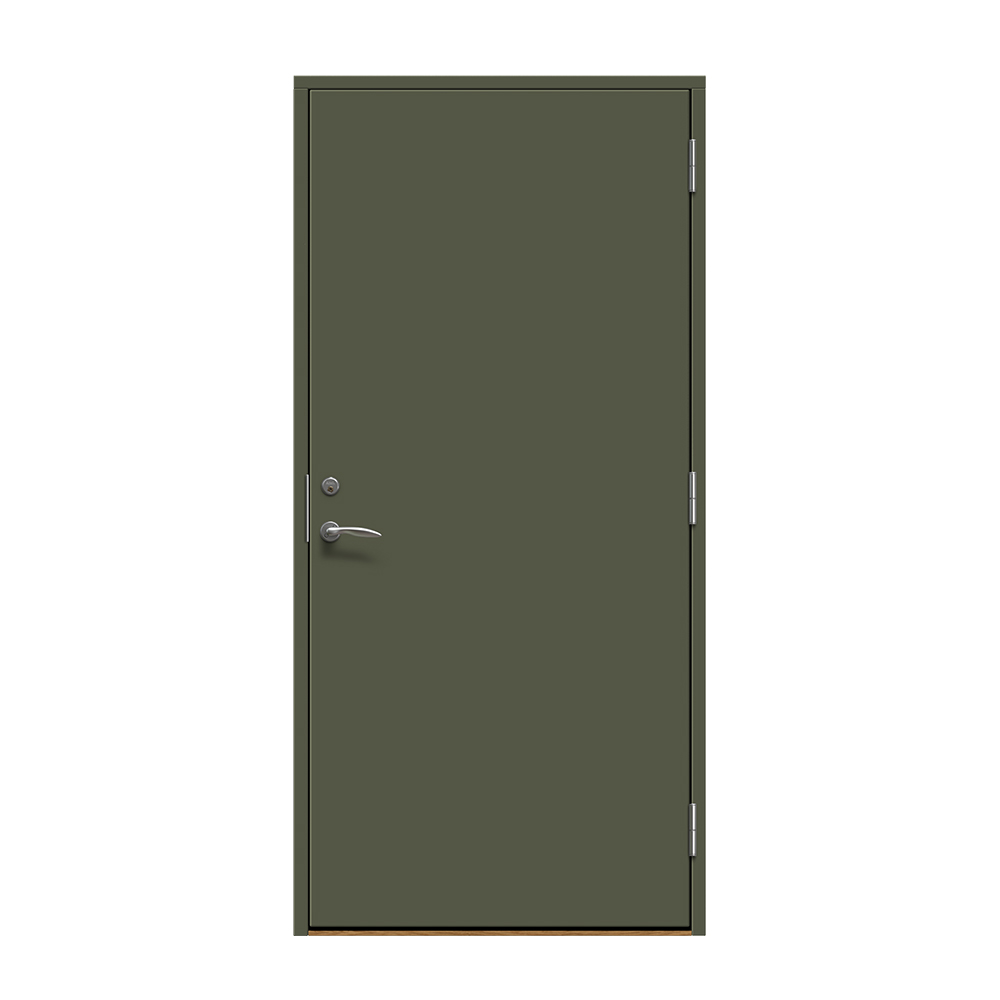 Dörren finns i 12 olika kulörer så att du ska få den perfekta dörren till ditt hem. Möjligheten finns även att göra ditt helt egna val av kulör genom att skriva in den specifika RAL kod som du vill ha. Du kan välja till vit insida på din dörr. Väljer man inte vit insida så får man ytterdörren i den kulör man valt både in- och utvändigt, detta gäller även för karmen.