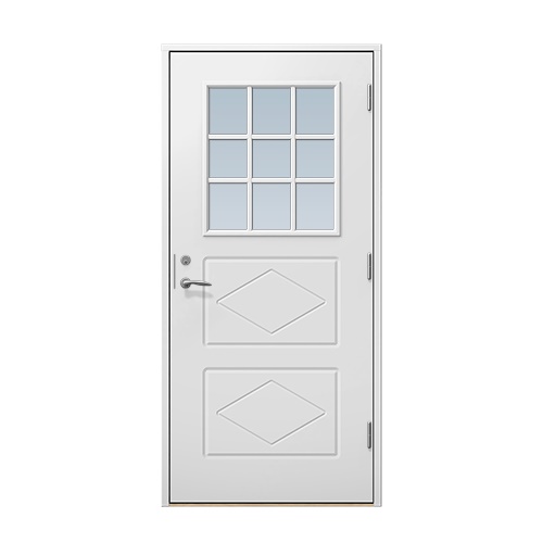 KULÖR Vattenbaserad målningsteknik. Vi rekommenderar inte ommålning av ytterdörren eftersom glaslist och dörr är i olika material och kan reagera olika på den färg som används. Observera att en ytterdörr i mörk kulör ska monteras skyddad från direkt starkt solljus och hög värme för att undvika skevhet och solblekning.