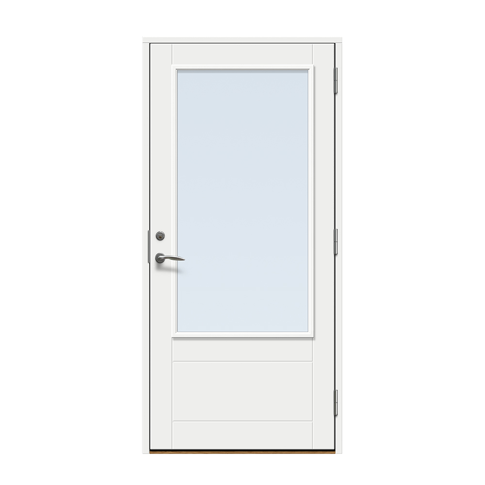 Björkhagen är en säker, stilren och modern dörr med ett snyggt glas som täcker större delen av dörren. Den kommer ge ditt hem ett fantastiskt ljusinsläpp.