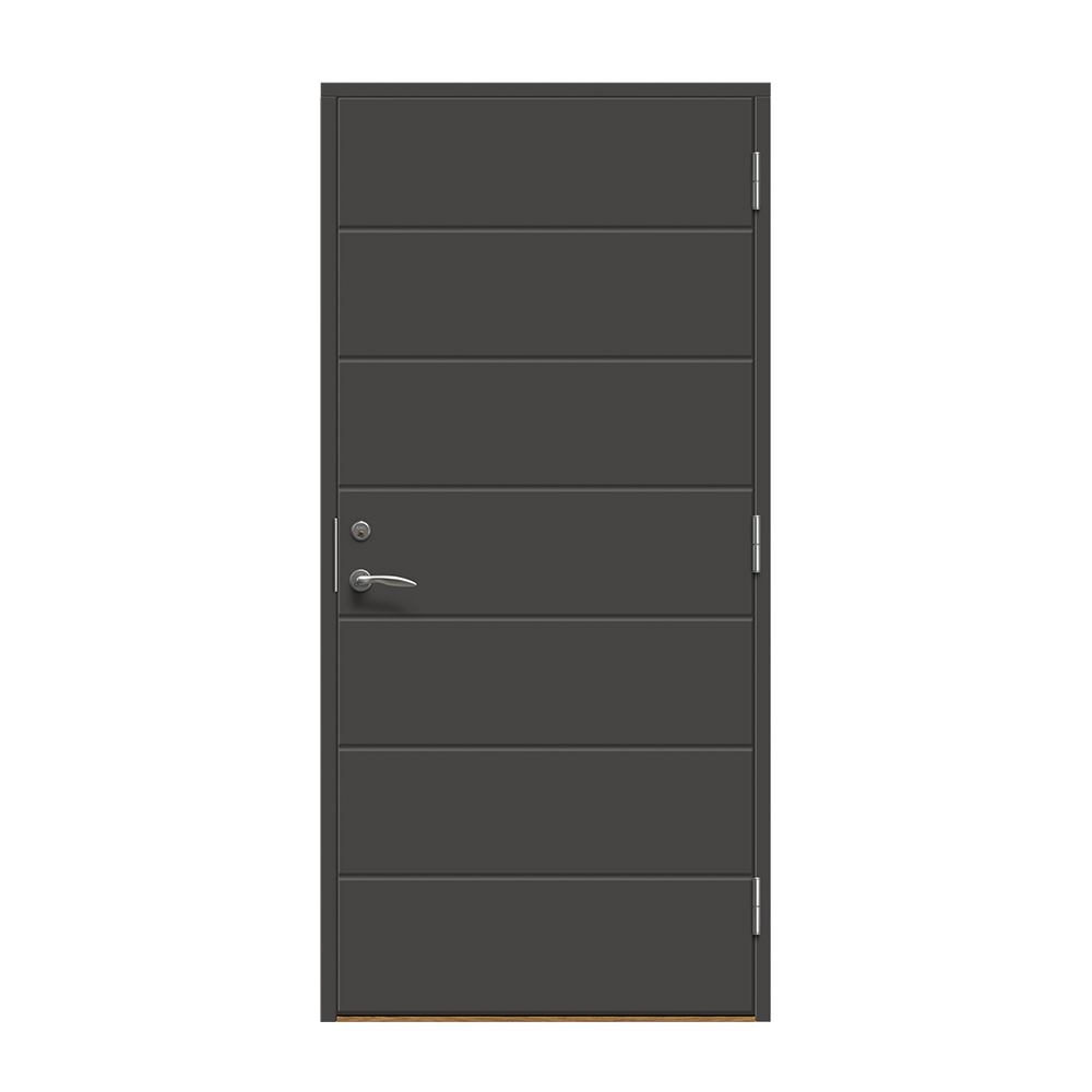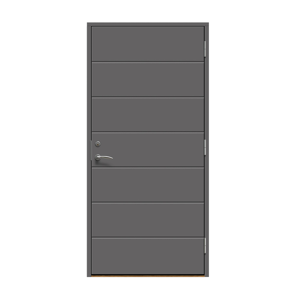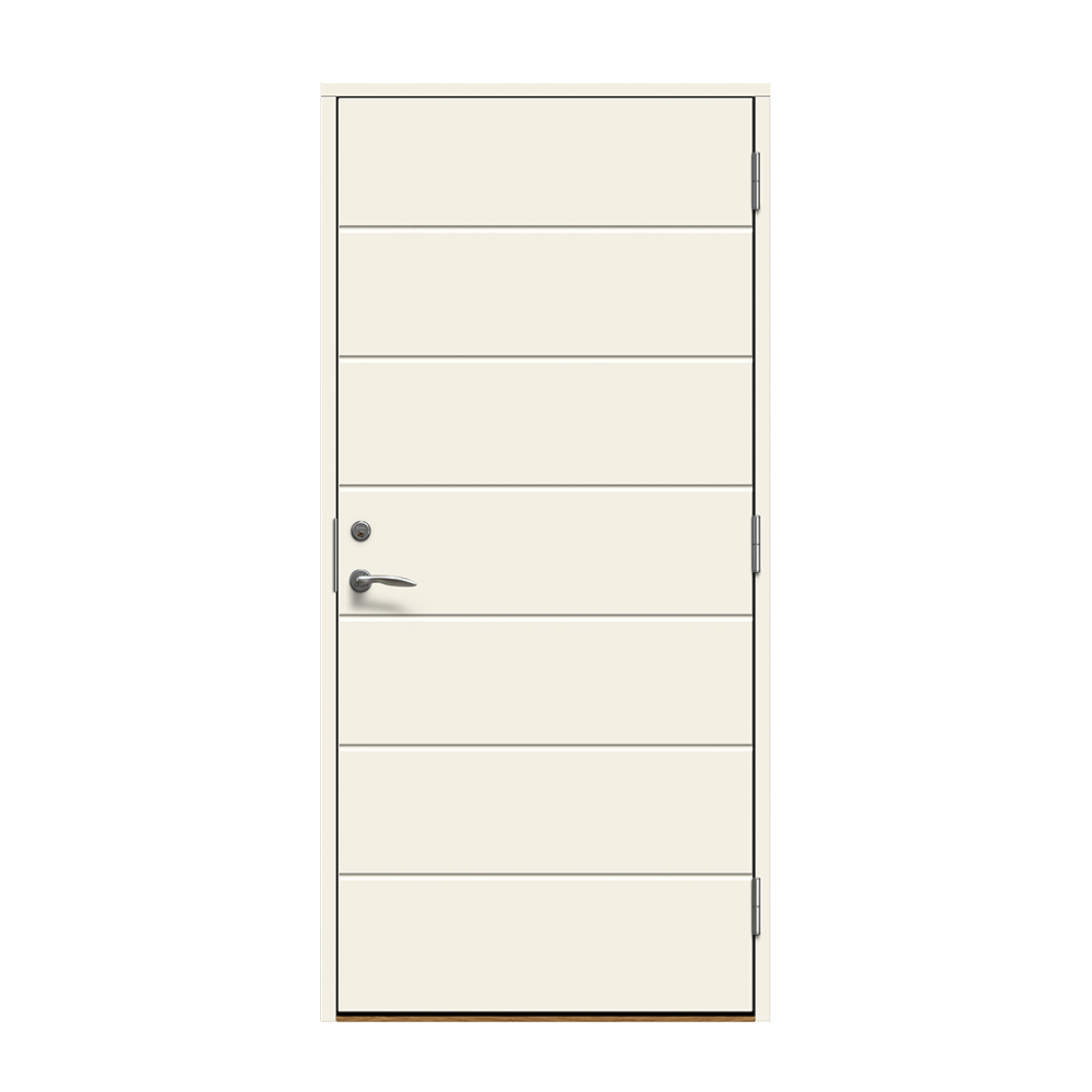 Dalby är en tät entrédörr med utvändig spårfräsning som ger ett stilrent utseende. Dörren har en slät insida.