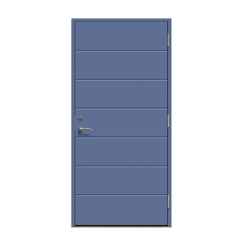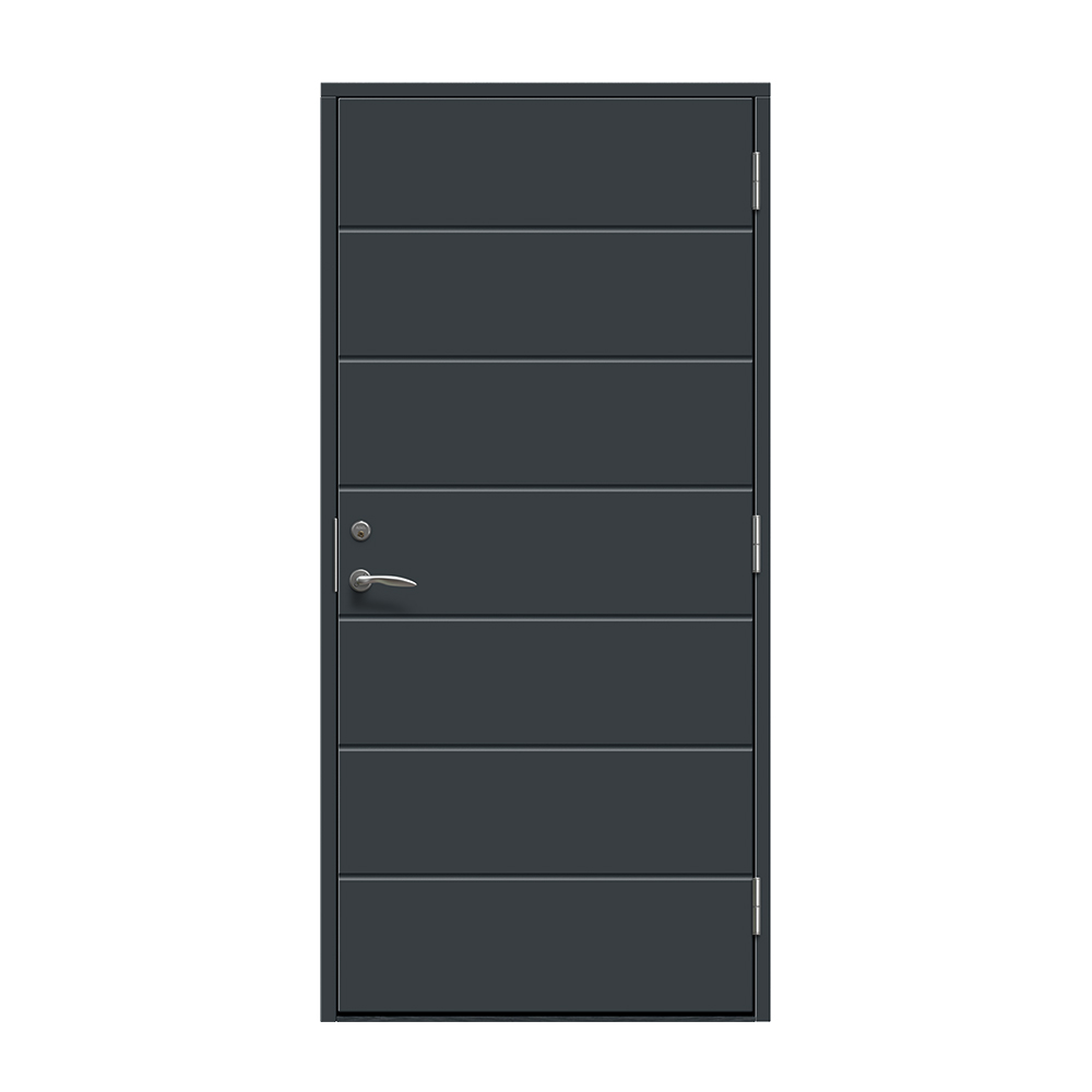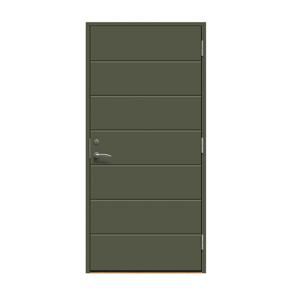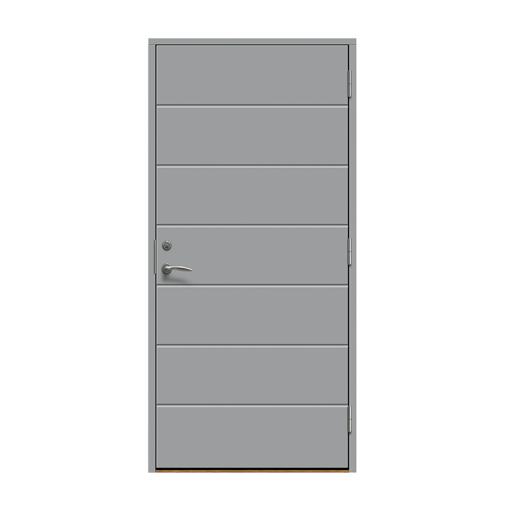 Dalby är en tät entrédörr med utvändig spårfräsning som ger ett stilrent utseende. Dörren har en slät insida.
