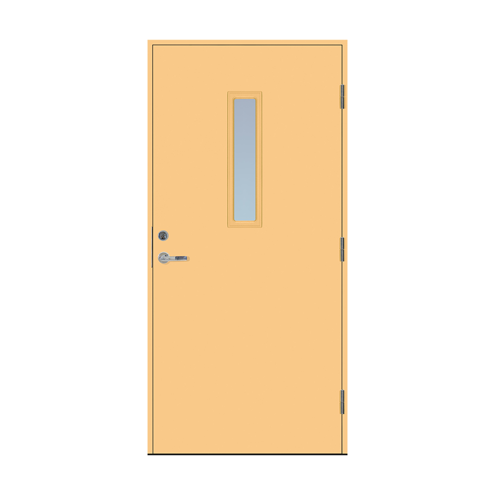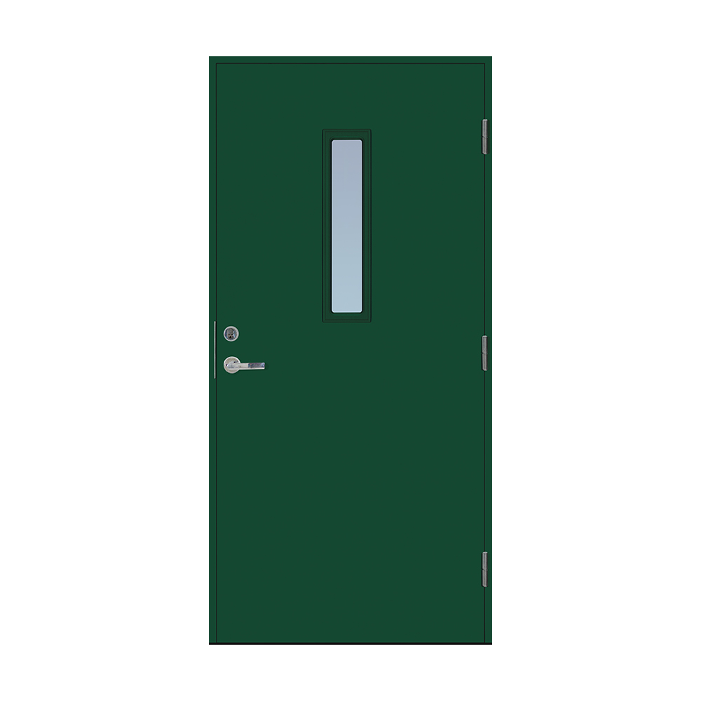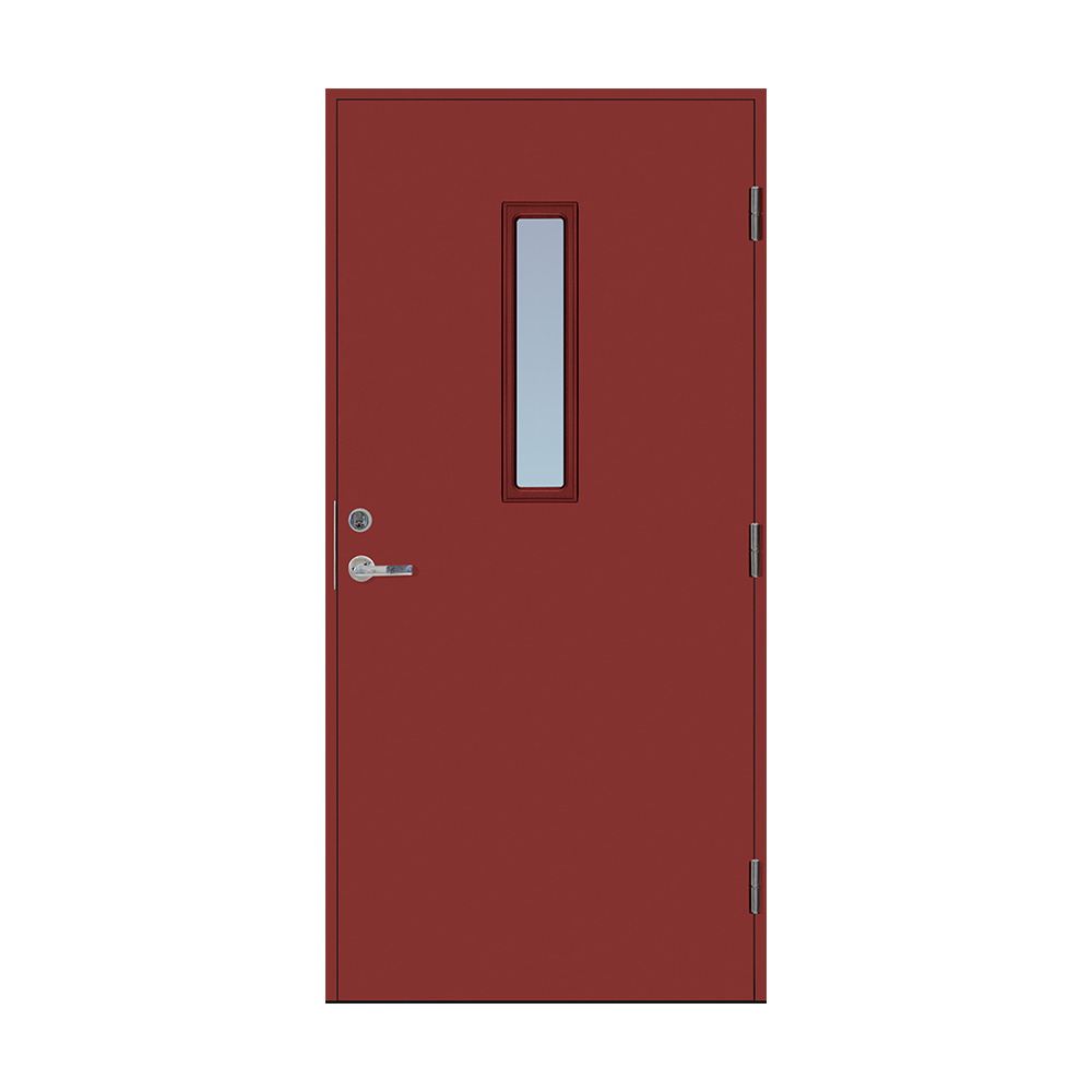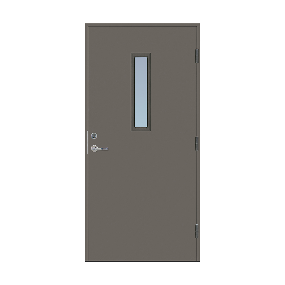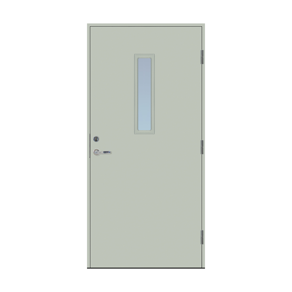 Dörrbladet har en slät insida, är 64 mm tjock och har 55 mm isolering samt två aluminiumplåtar som skyddar den inre konstruktionen.