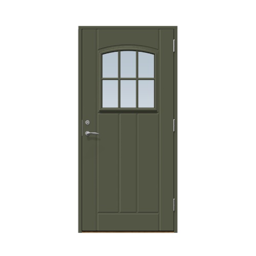 Hittarp är en spårfräst entrédörr med ett klassiskt fönster inkl. fasta spröjs.