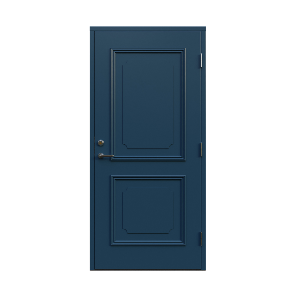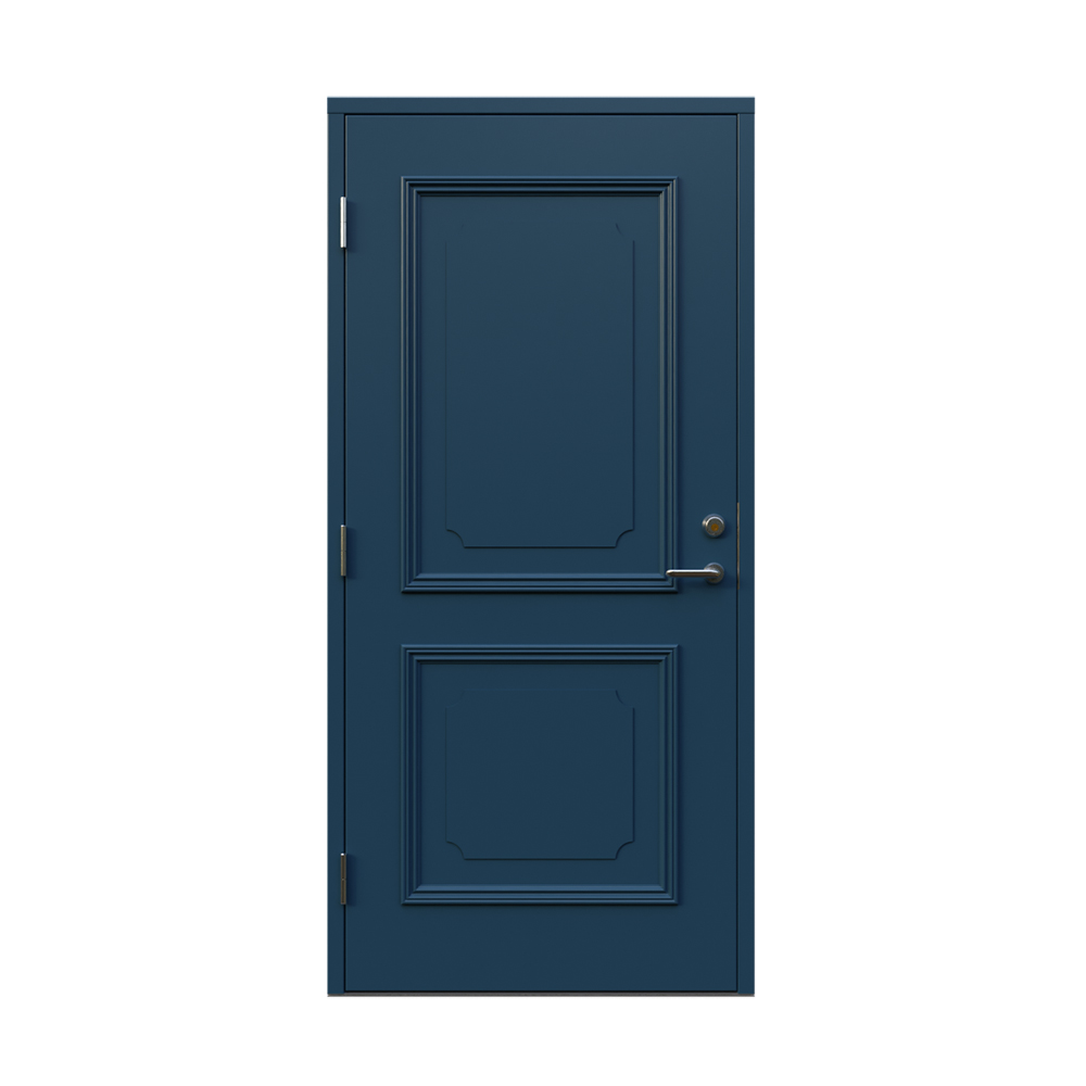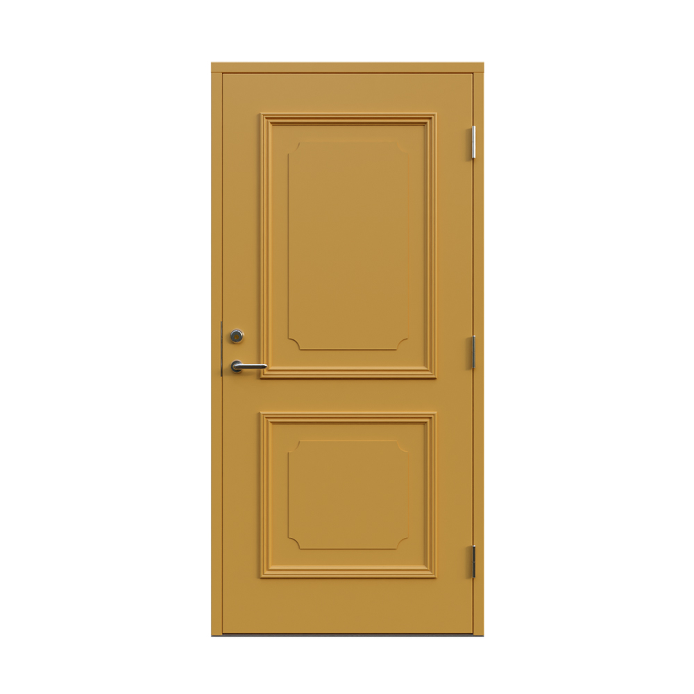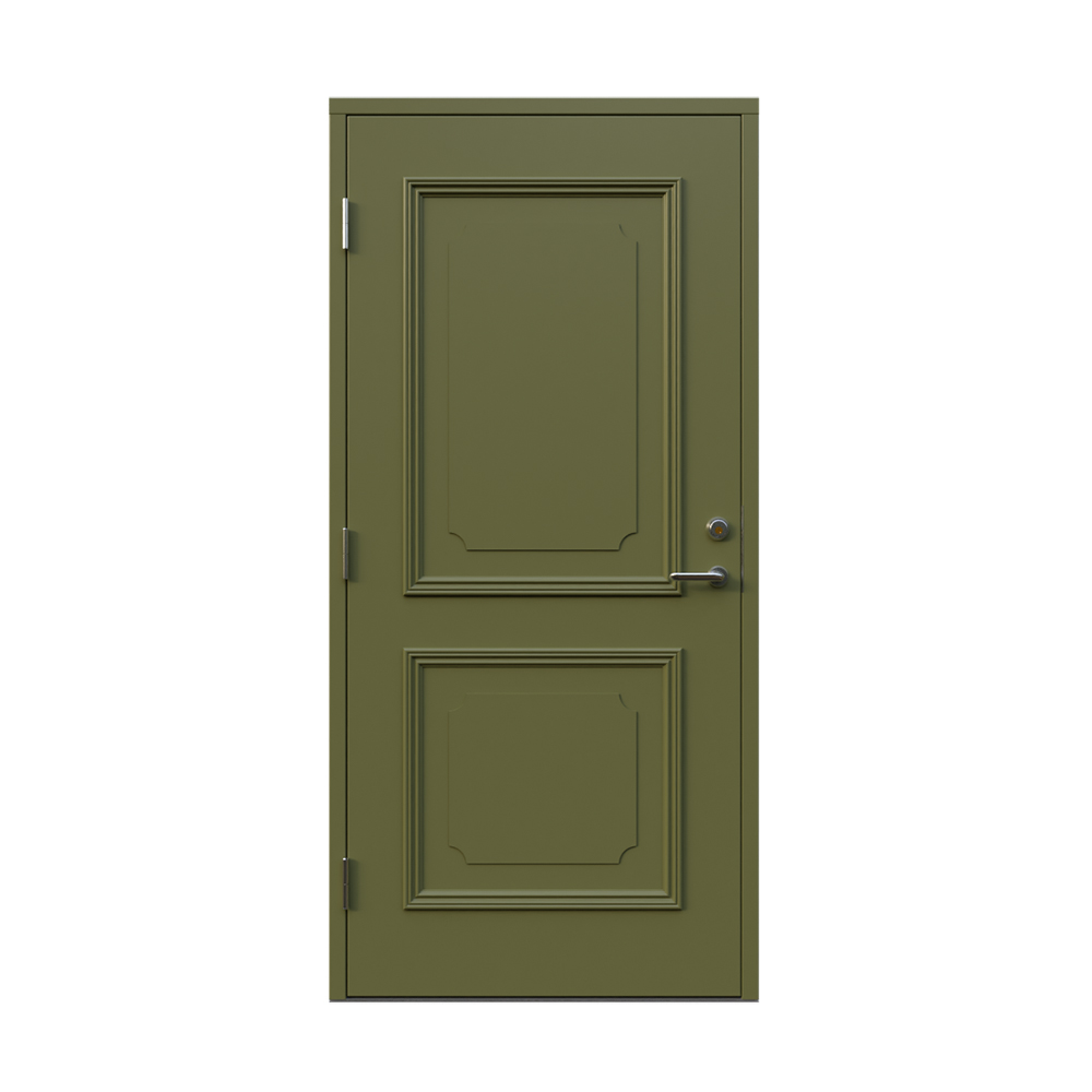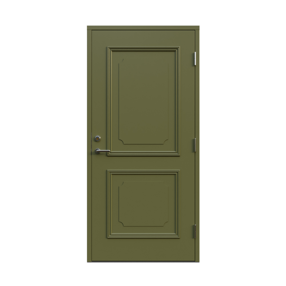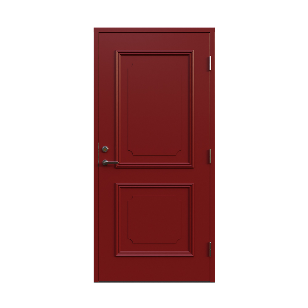 Denna dörren är inbrottsskyddad som standard och har 74 mm tjockt dörrblad och dubbelt ramträ, vilket ger en mer ljuddämpande konstruktion.
