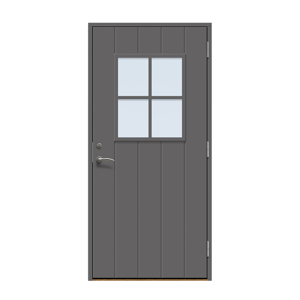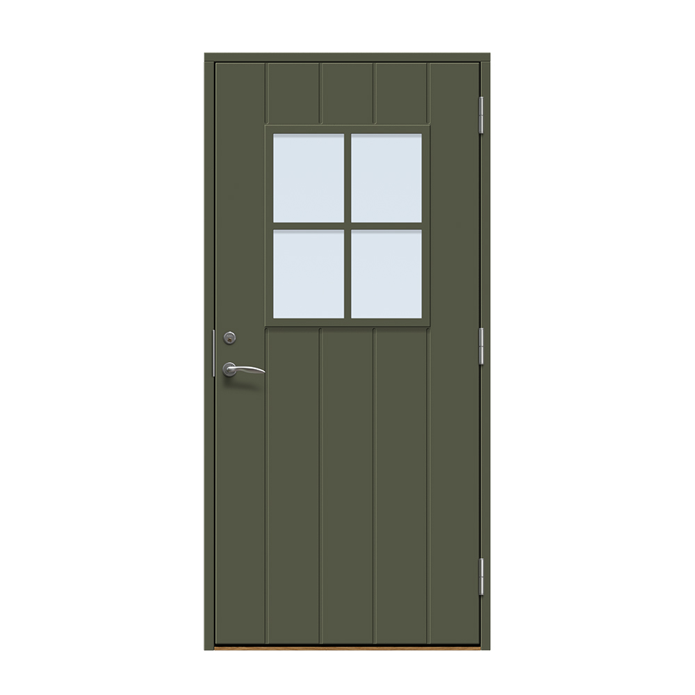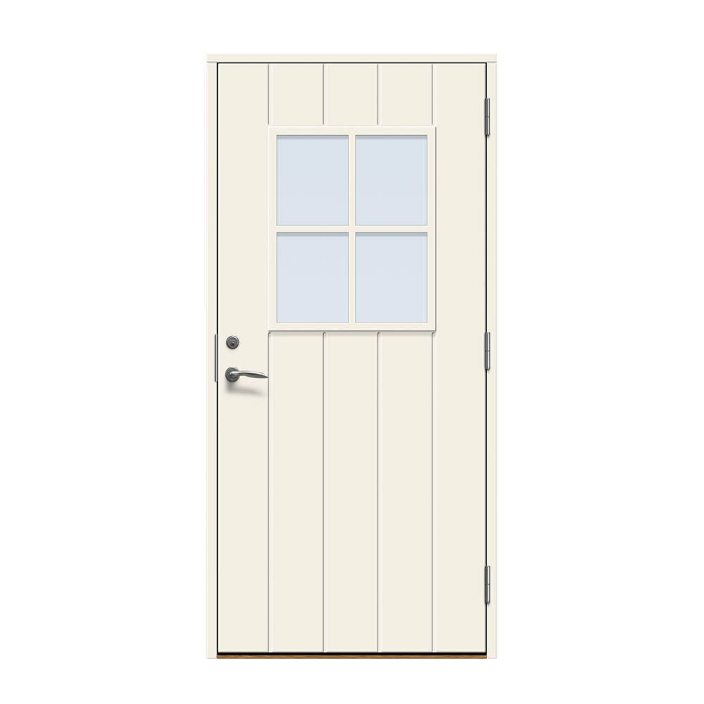 Kivik är en traditionell entrédörr med spårfräst utsida och slät insida.