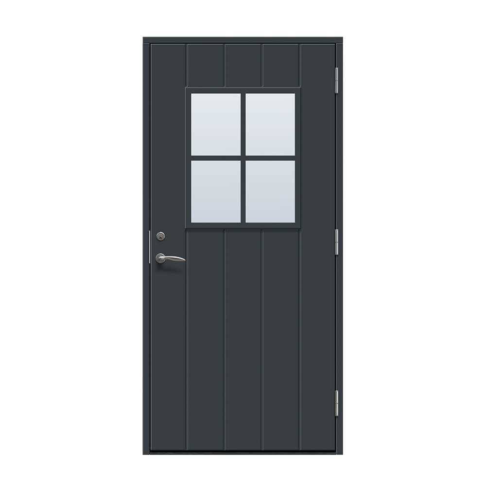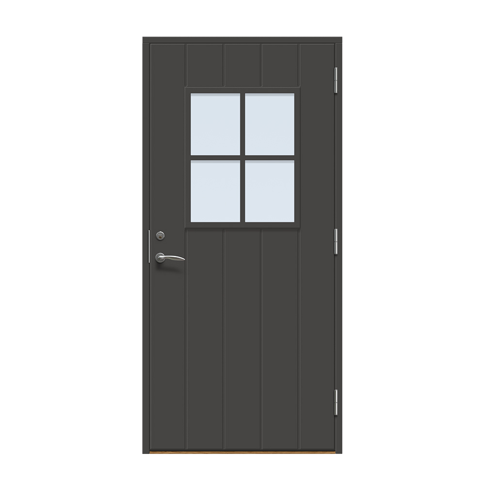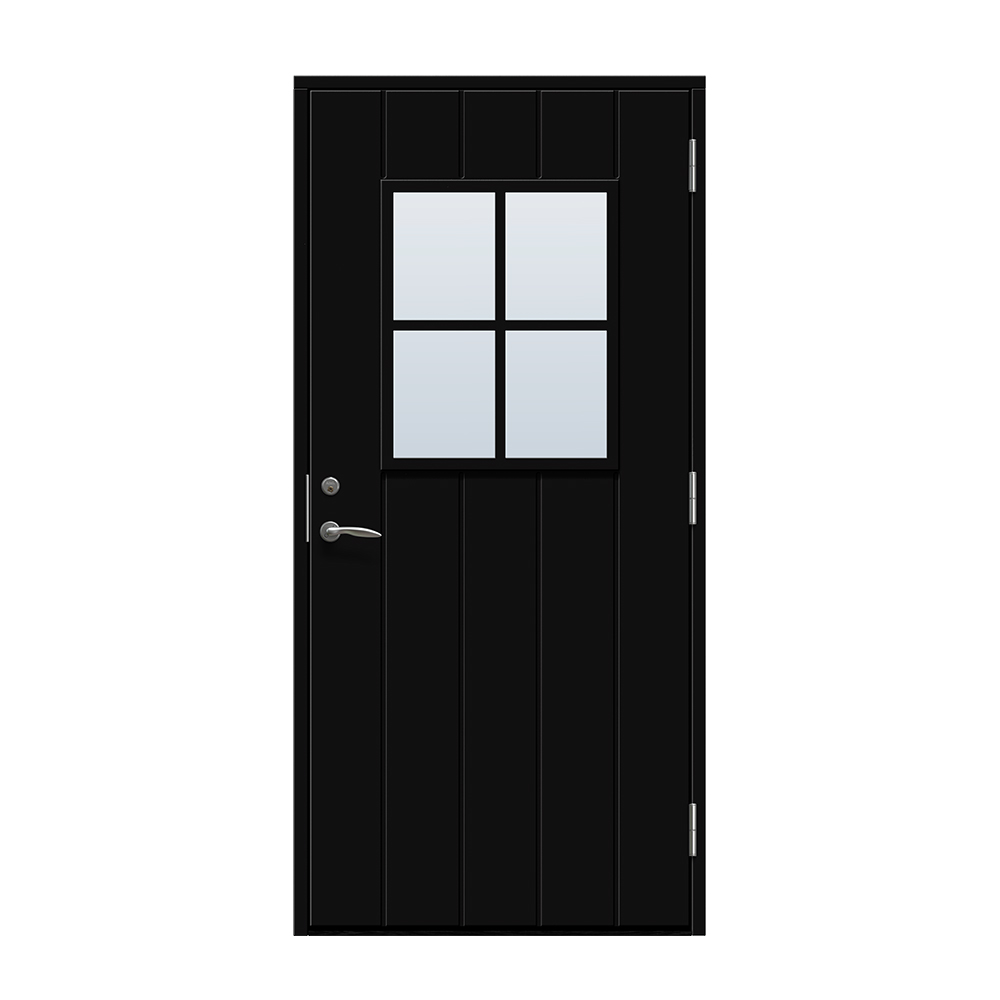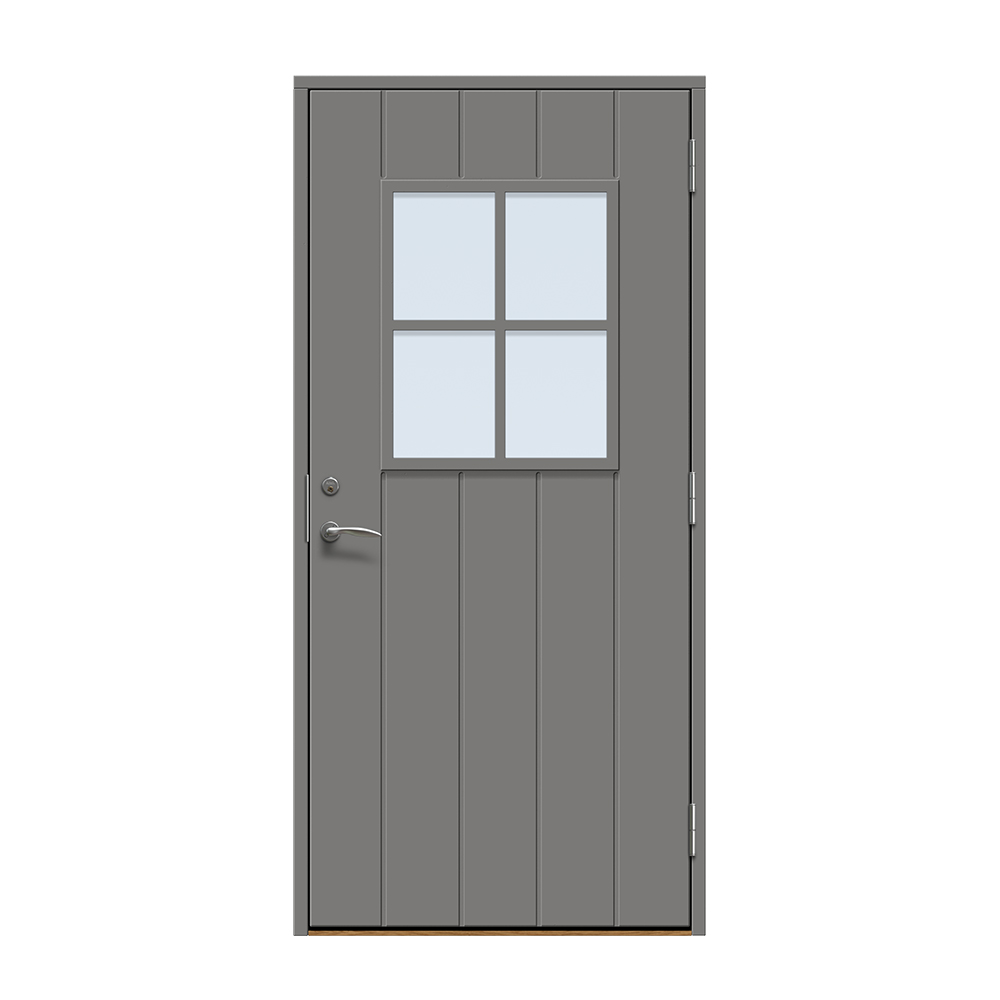 Kivik är en traditionell entrédörr med spårfräst utsida och slät insida.
