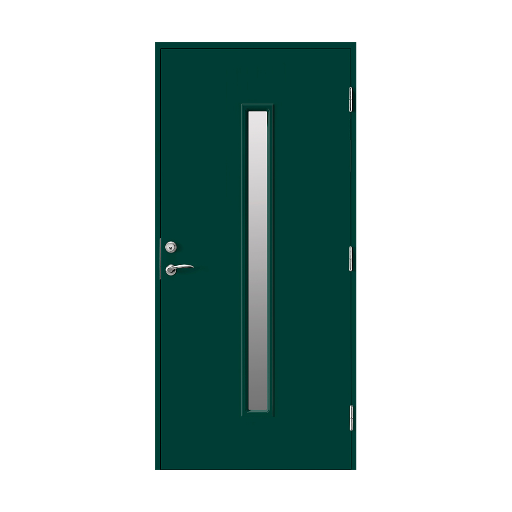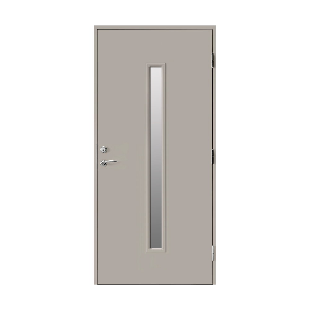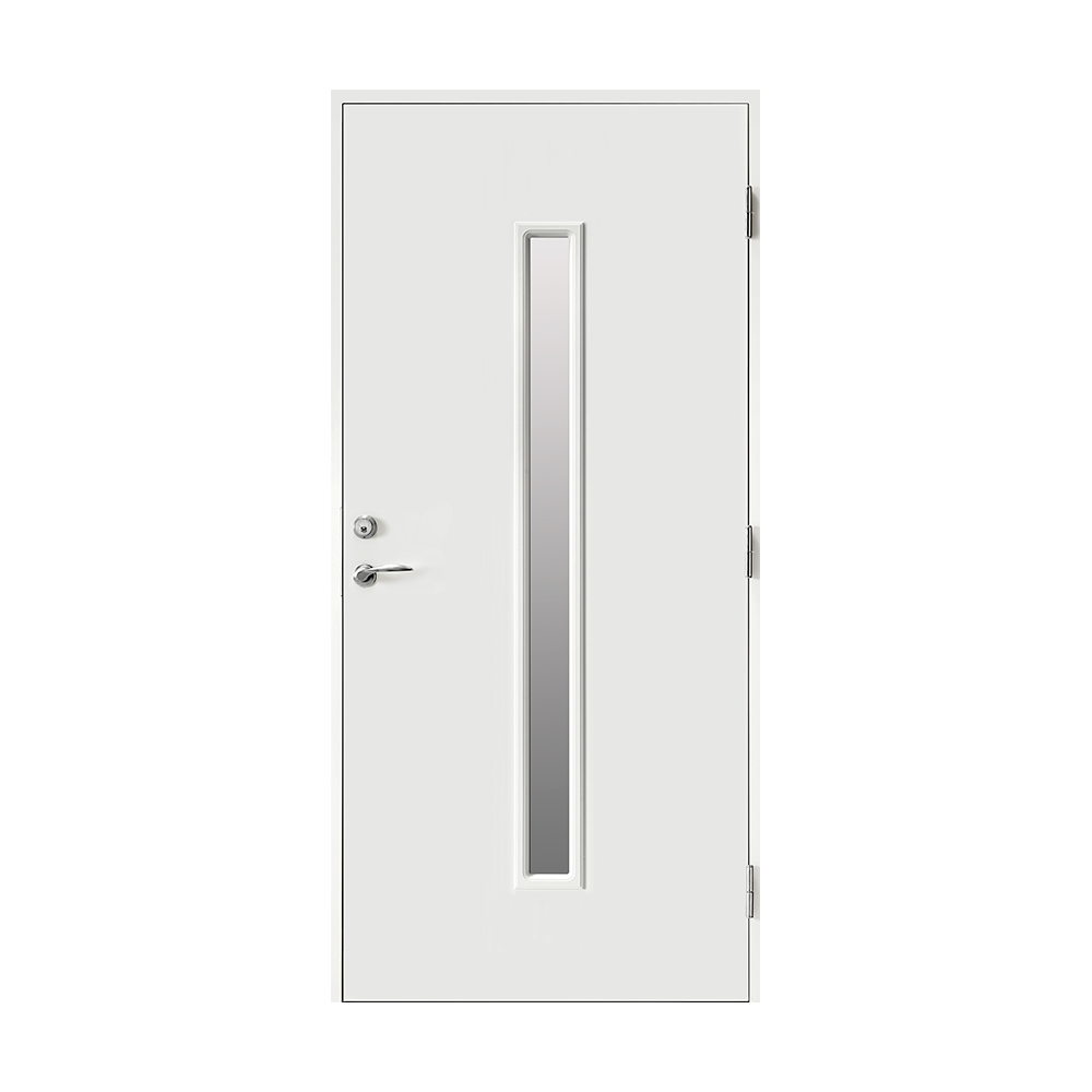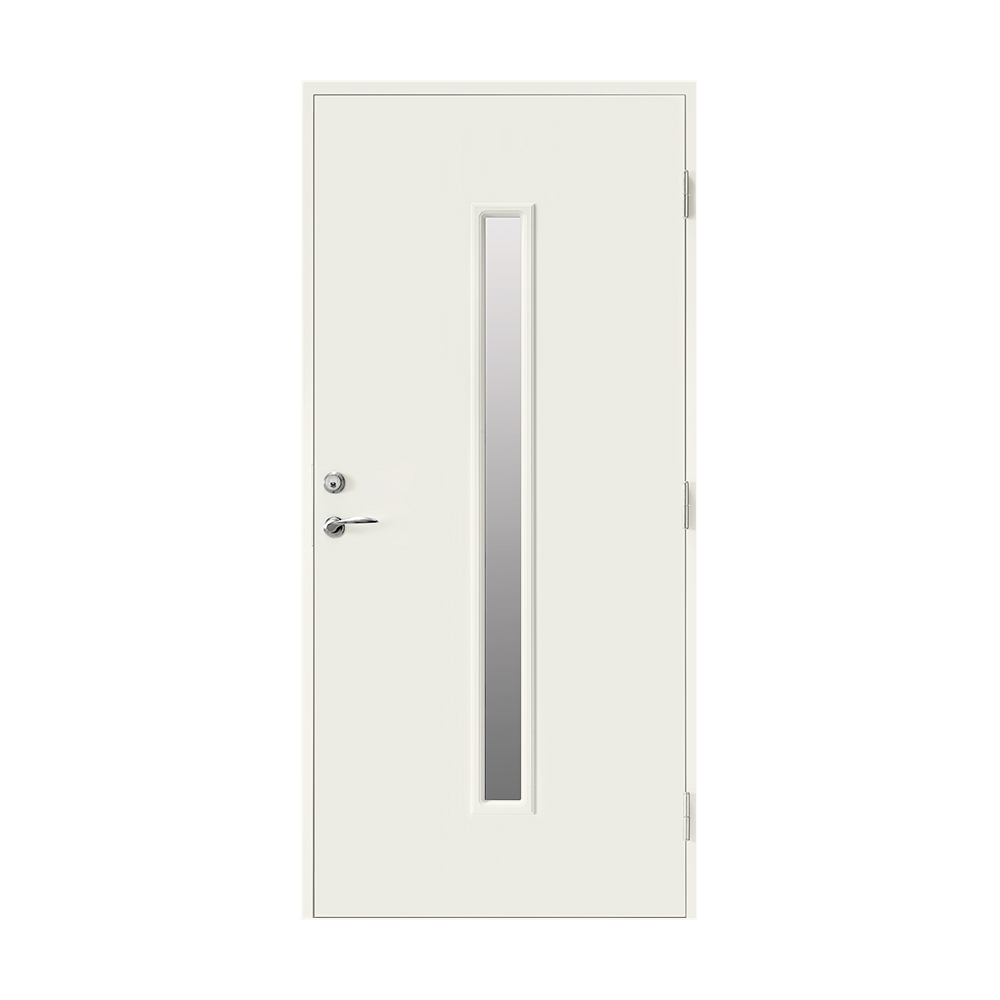 Lessebo är en modern dörr med ett långt smalt fönster. Fönstret ger ett härligt ljusinsläpp i hallen, välj mellan flera olika glastyper.