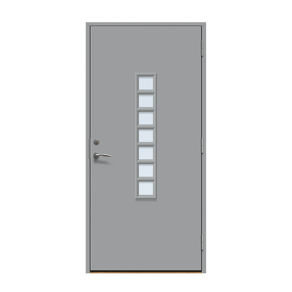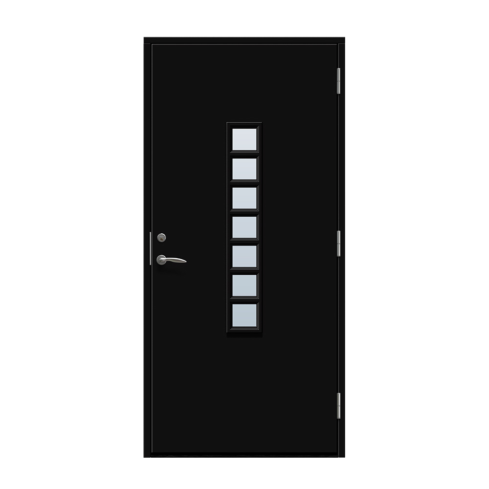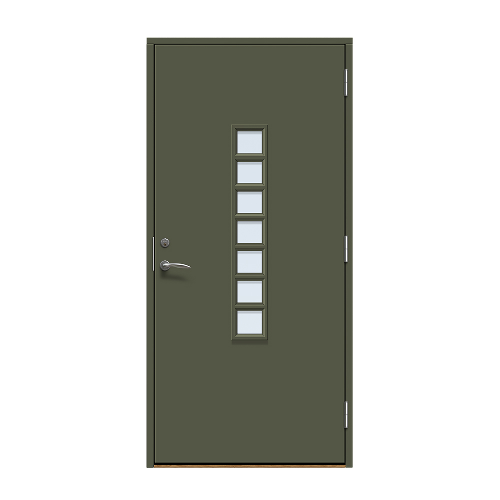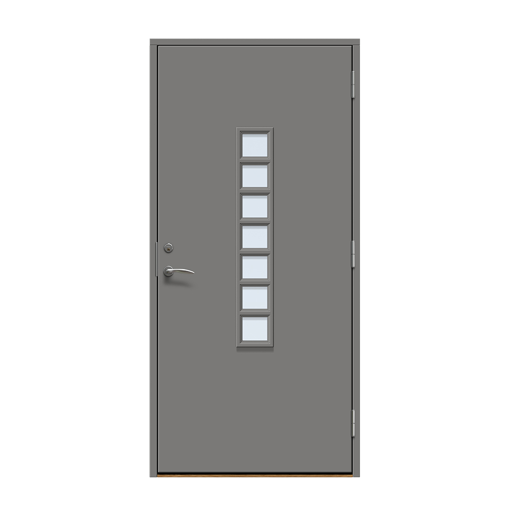 Dörren är täckt av en tålig faner. Behandlingen som appliceras på dörrens träfibrer gör att dörren tål extrema mängder vatten med minimal rörelse och svullnad. Dörren blir mycket tålig och färgen fäster bättre vilket ger längre underhållsintervall. Om dörren har fönster kommer glaset vara laminerat för extra styrka.