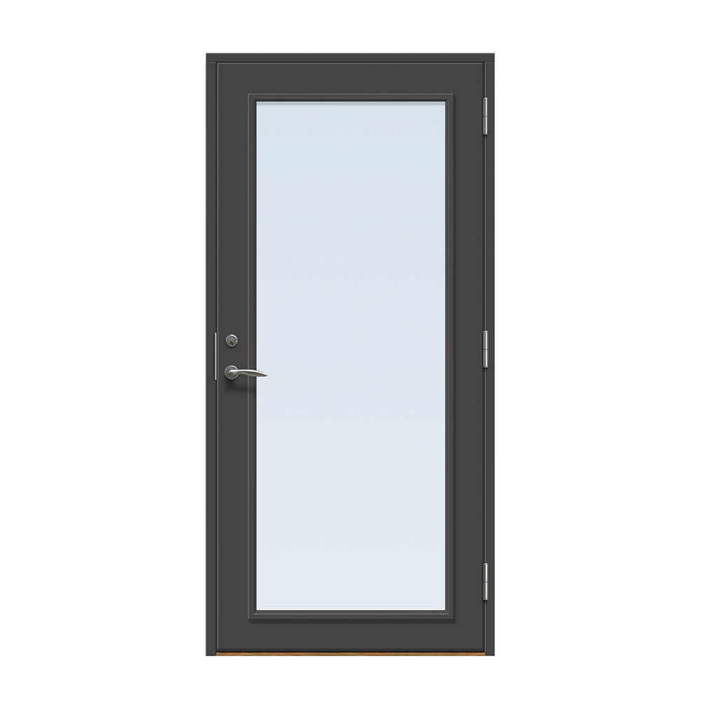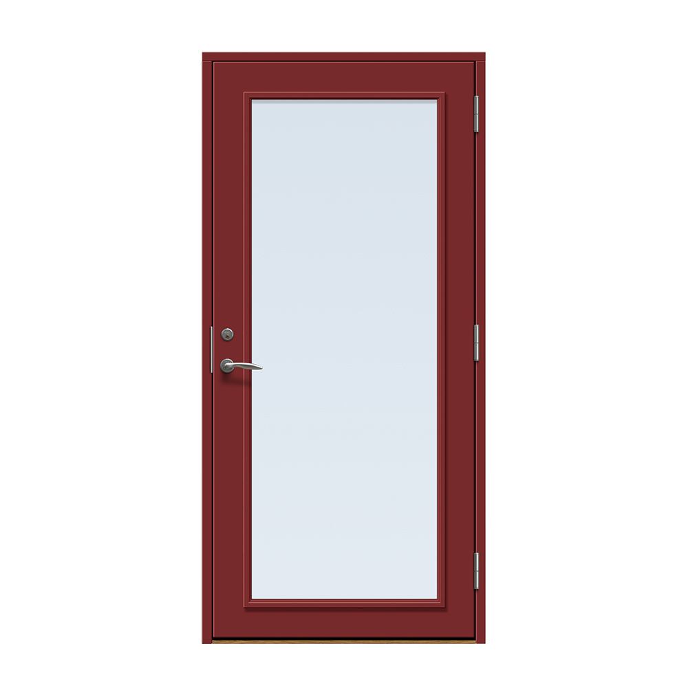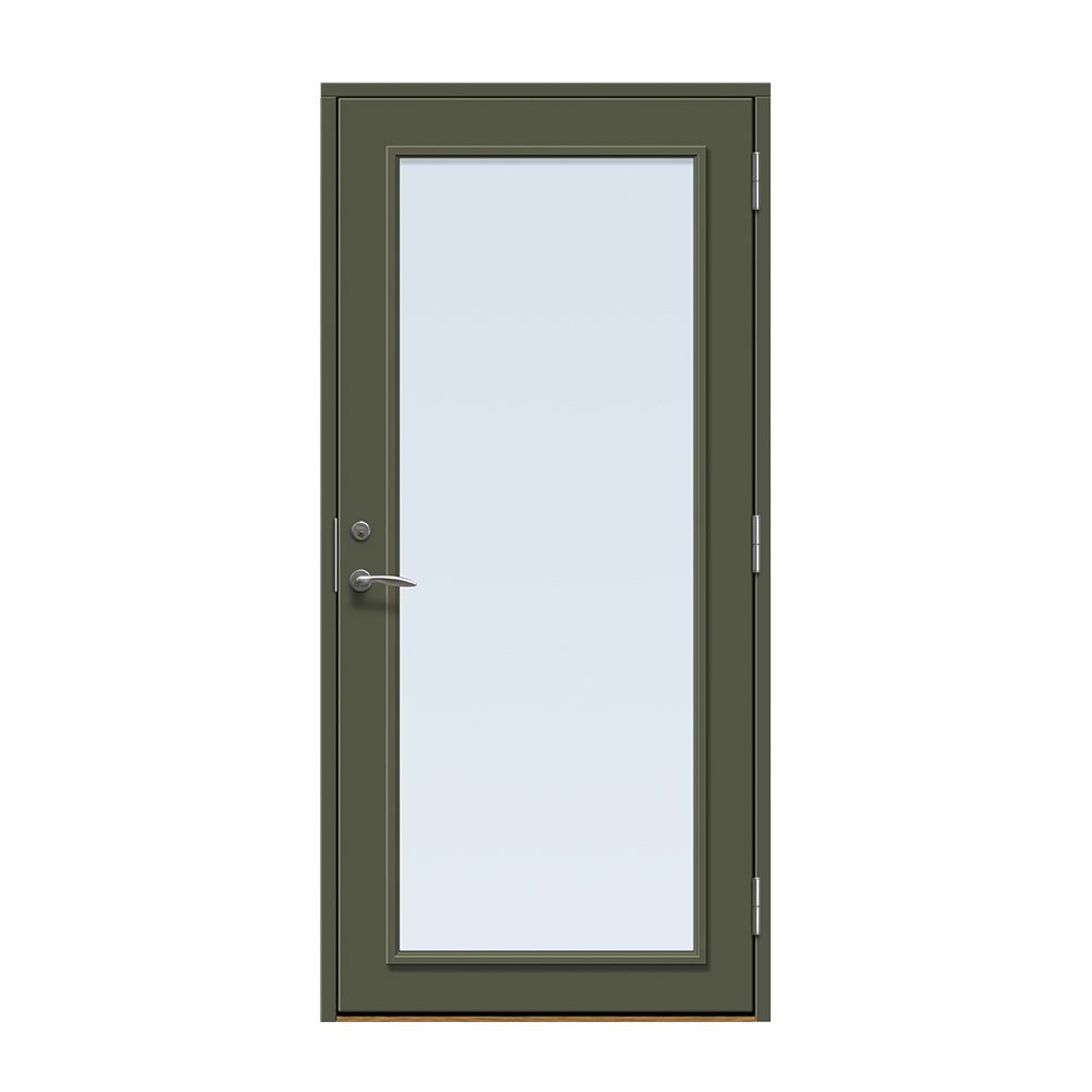Dörren färgläggs med en vattenbaserad målningsteknik. Vi rekommenderar inte ommålning av ytterdörren eftersom glaslist och dörr är i olika material och kan reagera olika på den färg som används. Observera att en ytterdörr i mörk kulör ska monteras skyddad från direkt starkt solljus och hög värme för att undvika skevhet och solblekning.