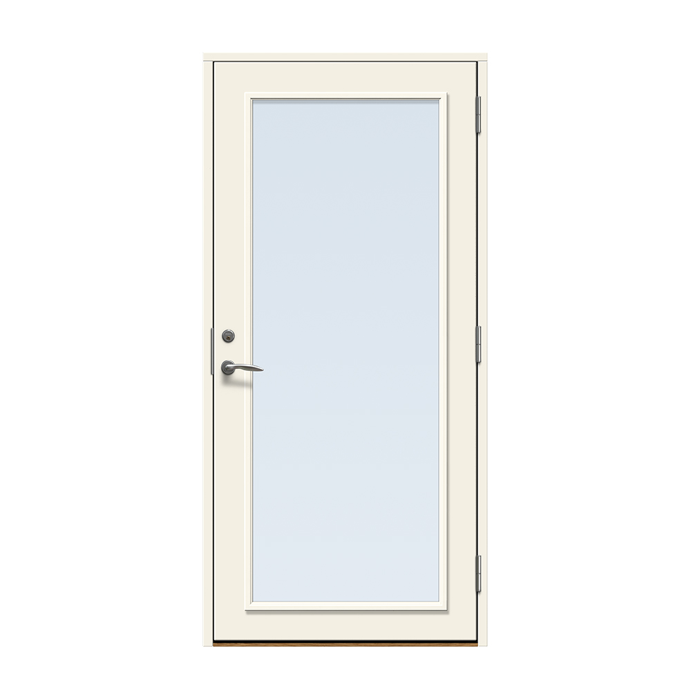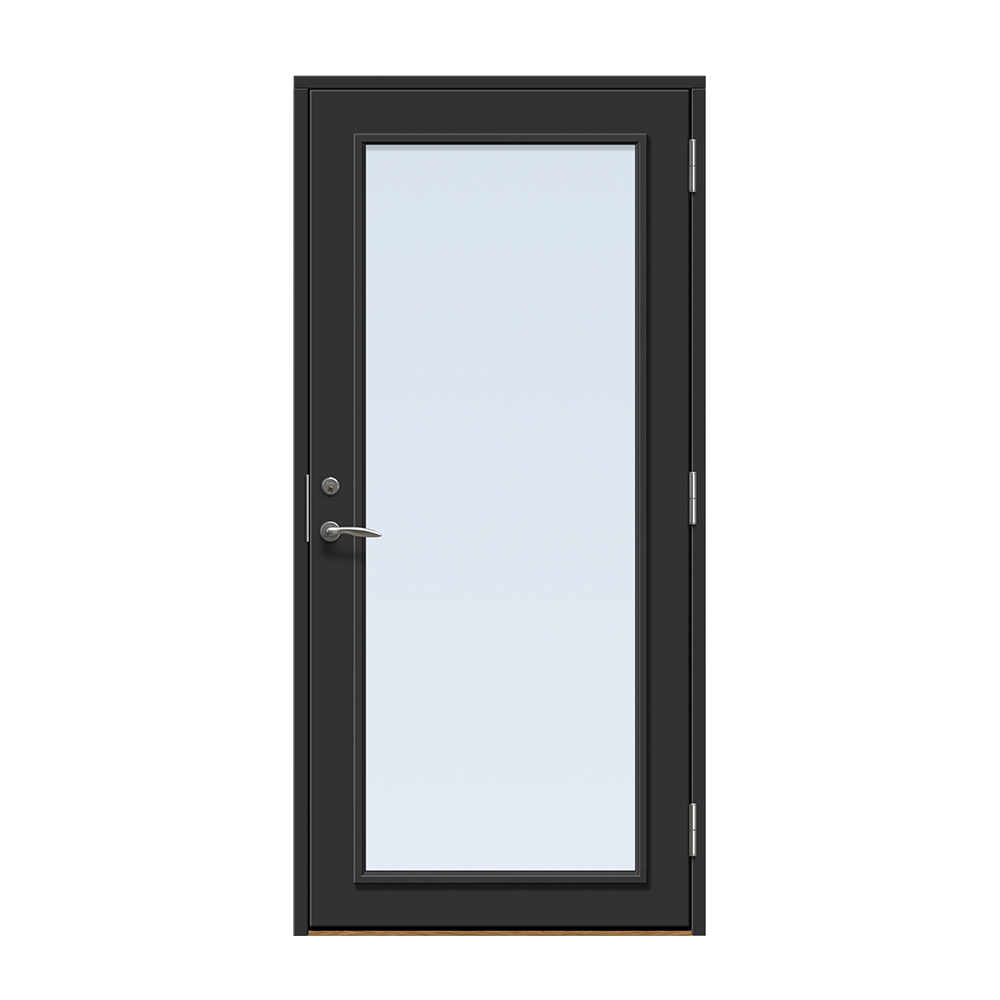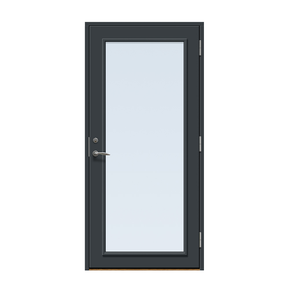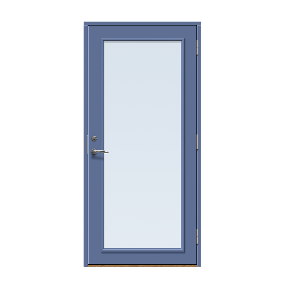 Dörren färgläggs med en vattenbaserad målningsteknik. Vi rekommenderar inte ommålning av ytterdörren eftersom glaslist och dörr är i olika material och kan reagera olika på den färg som används. Observera att en ytterdörr i mörk kulör ska monteras skyddad från direkt starkt solljus och hög värme för att undvika skevhet och solblekning.