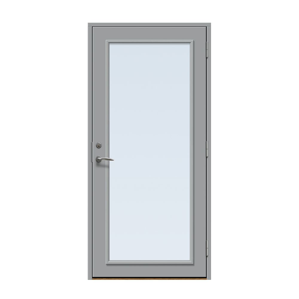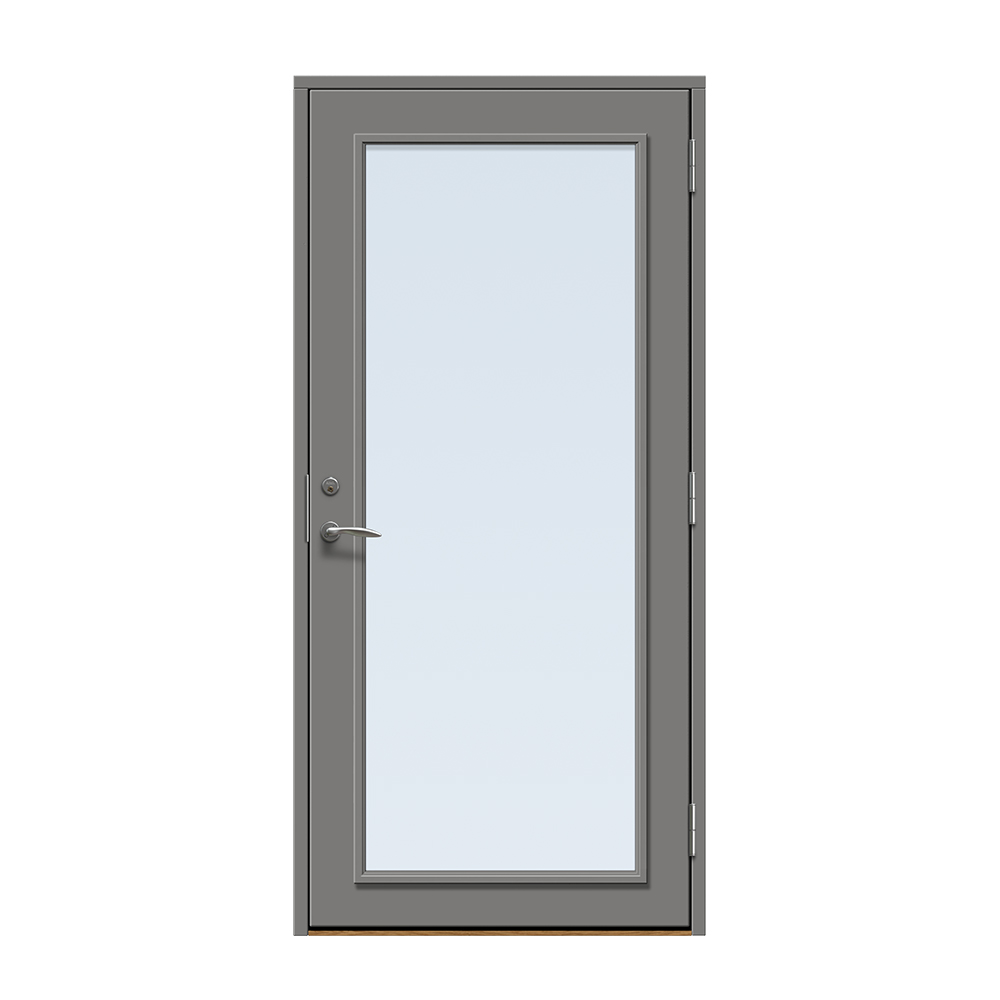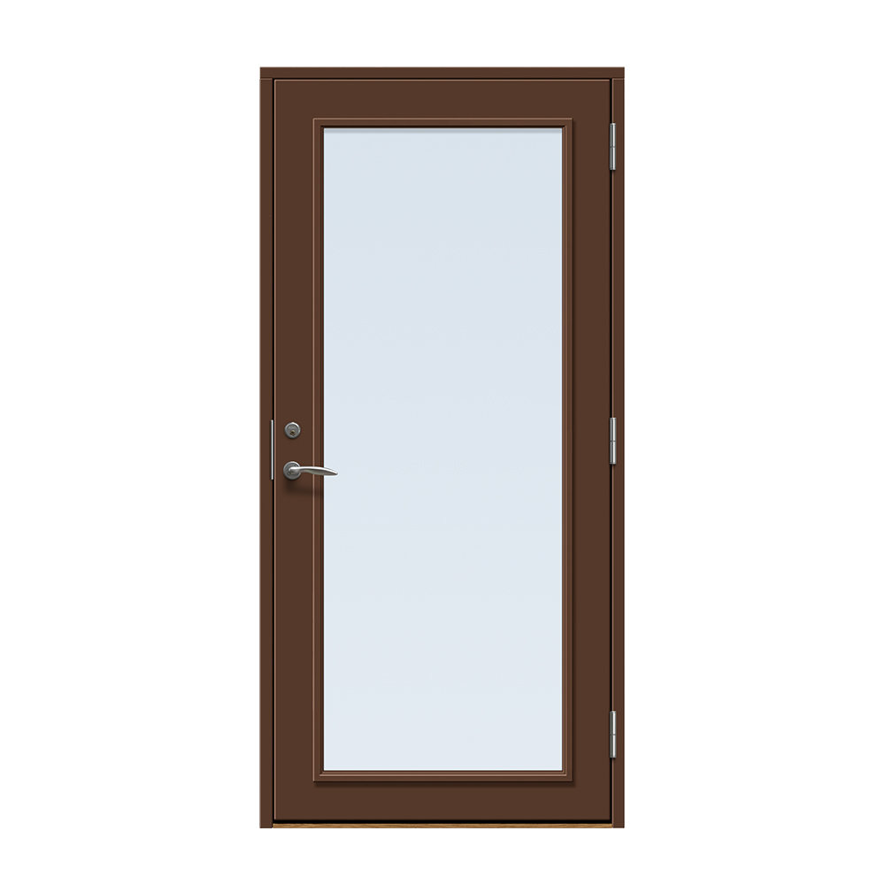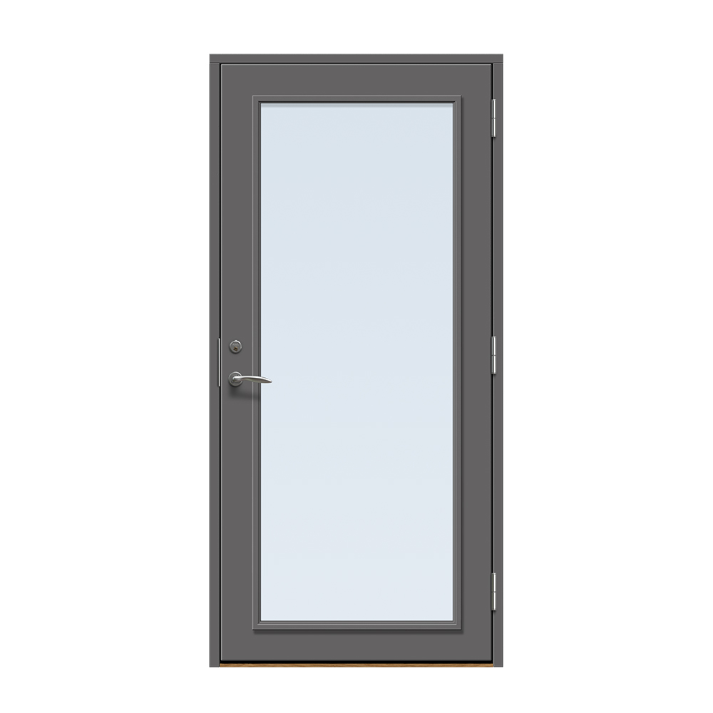 Dörren är täckt av en tålig faner. Behandlingen som appliceras på dörrens träfibrer gör att dörren tål extrema mängder vatten med minimal rörelse och svullnad. Dörren blir mycket tålig och färgen fäster bättre vilket ger längre underhållsintervall. Om dörren har fönster kommer glaset vara laminerat för extra styrka.