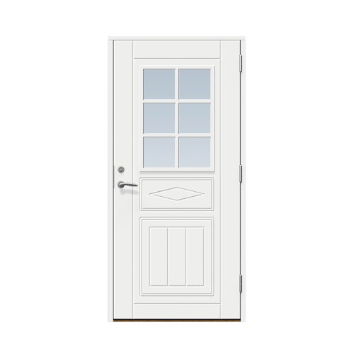 Svanshall är en entrédörr med ett klassiskt fönster inkl. fasta spröjs.