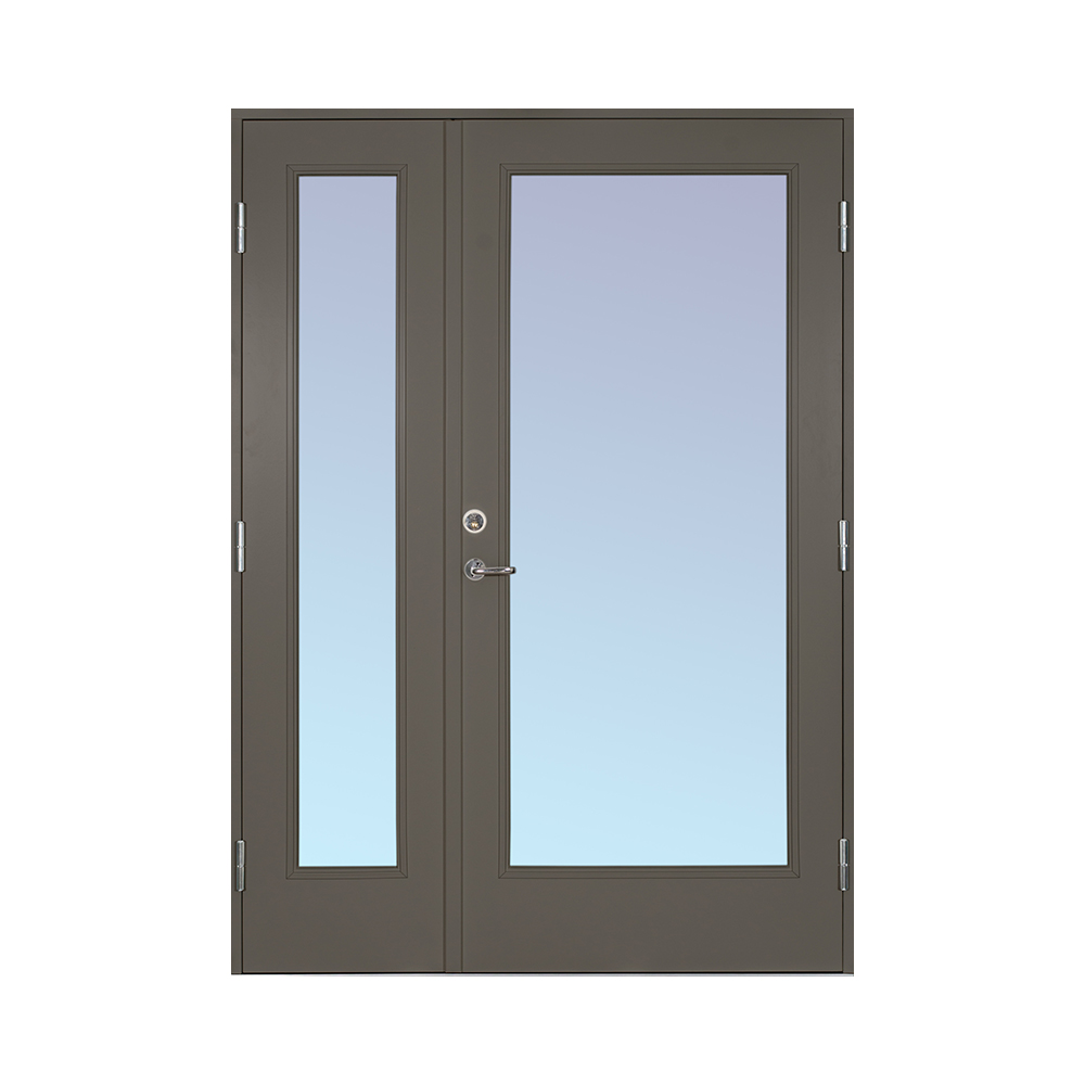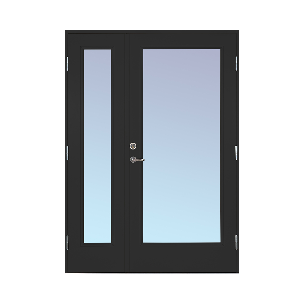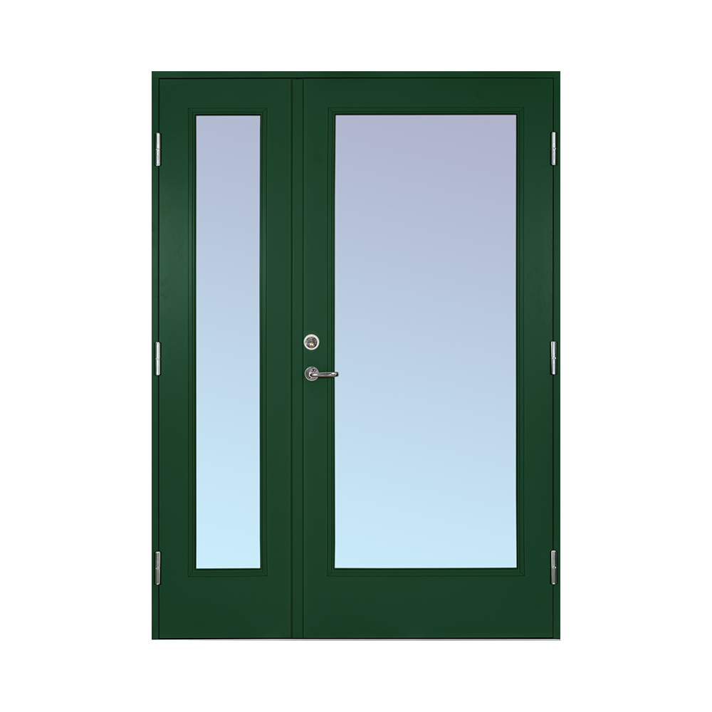 En halvpardörr är den perfekta kombinationen av pardörr och enkeldörr. Eftersom halvpardörren har en fullstor gångdörr så kan man enkelt komma in med barnvagnar och dylikt utan att behöva öppna båda dörrarna, men den ger ett maffigt intryck på huset precis som en pardörr. Kombinera gärna med ett sidoljus för en extra pampig entré.