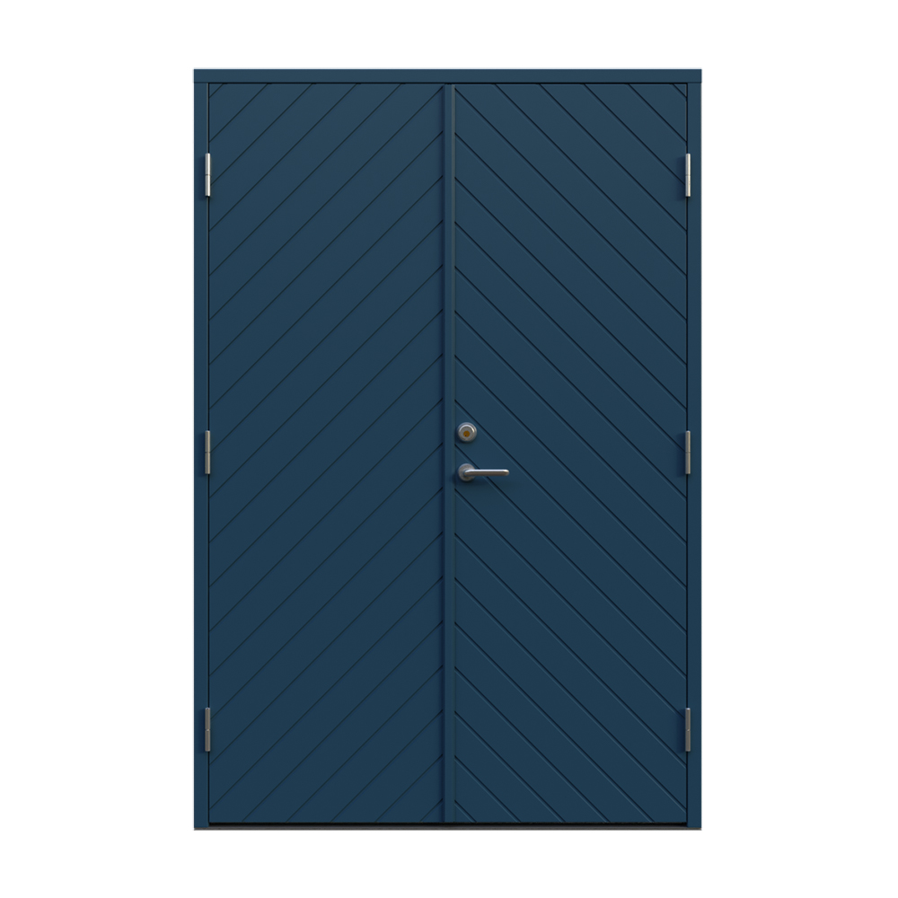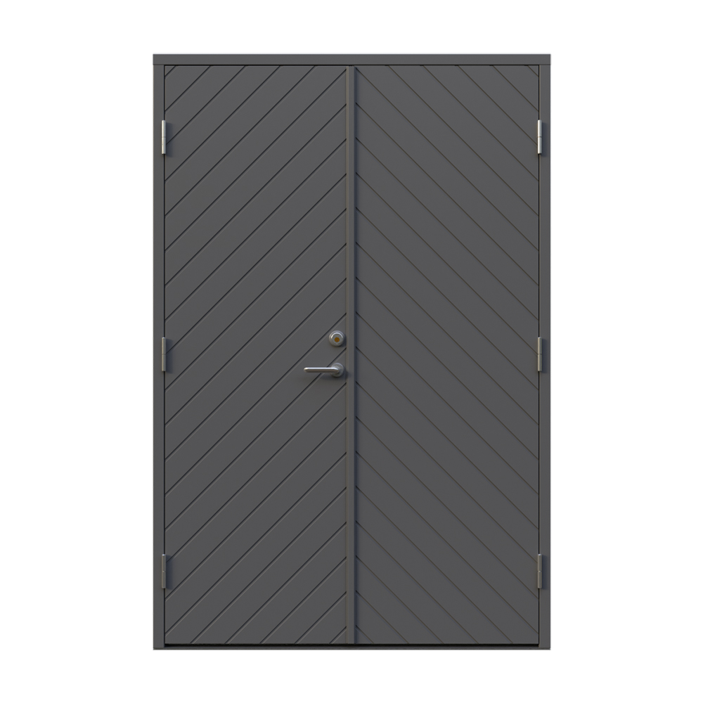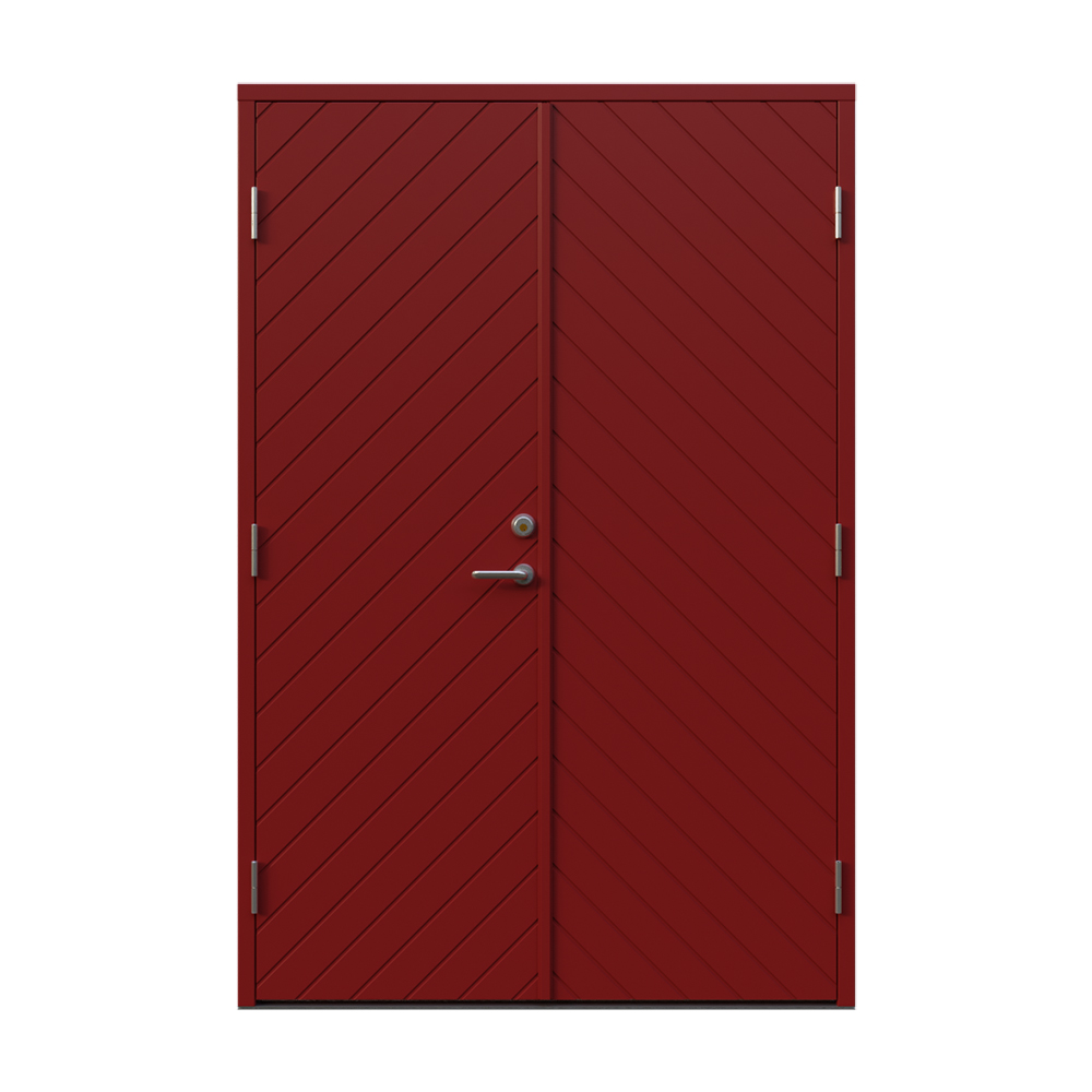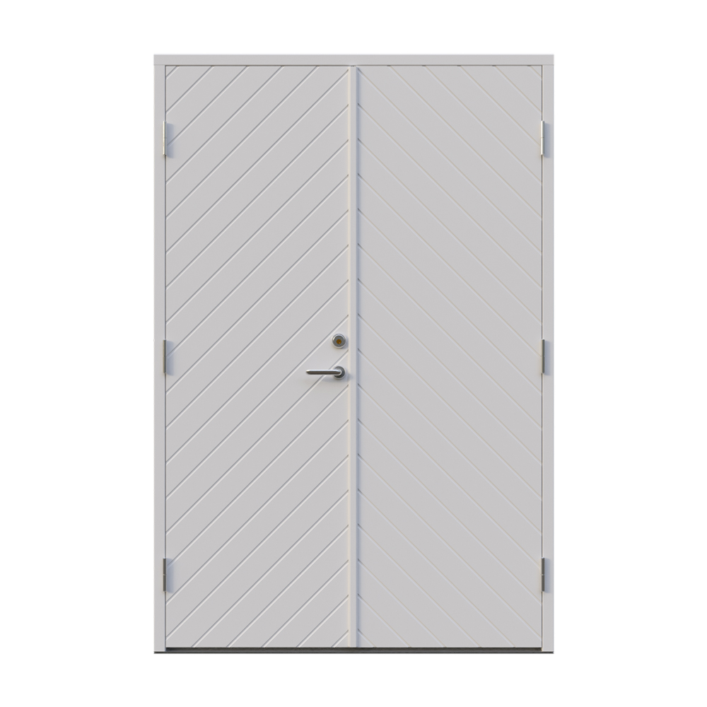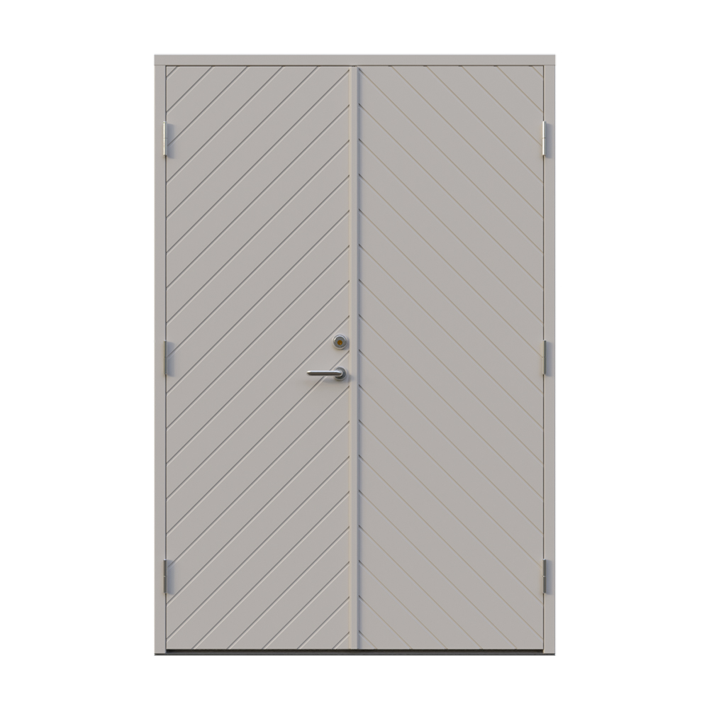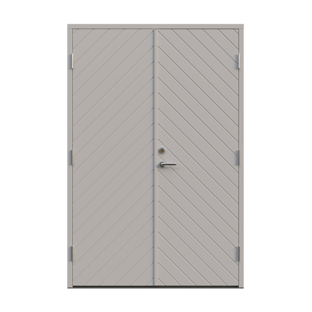 Dörren är utrustad med låskista och Justerbart säkerhetsslutbleck med dubbla säkerhetshylsor, båda från Assa.