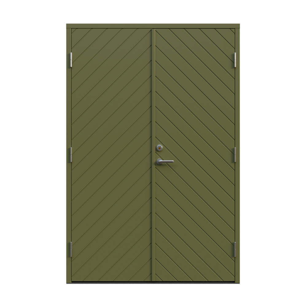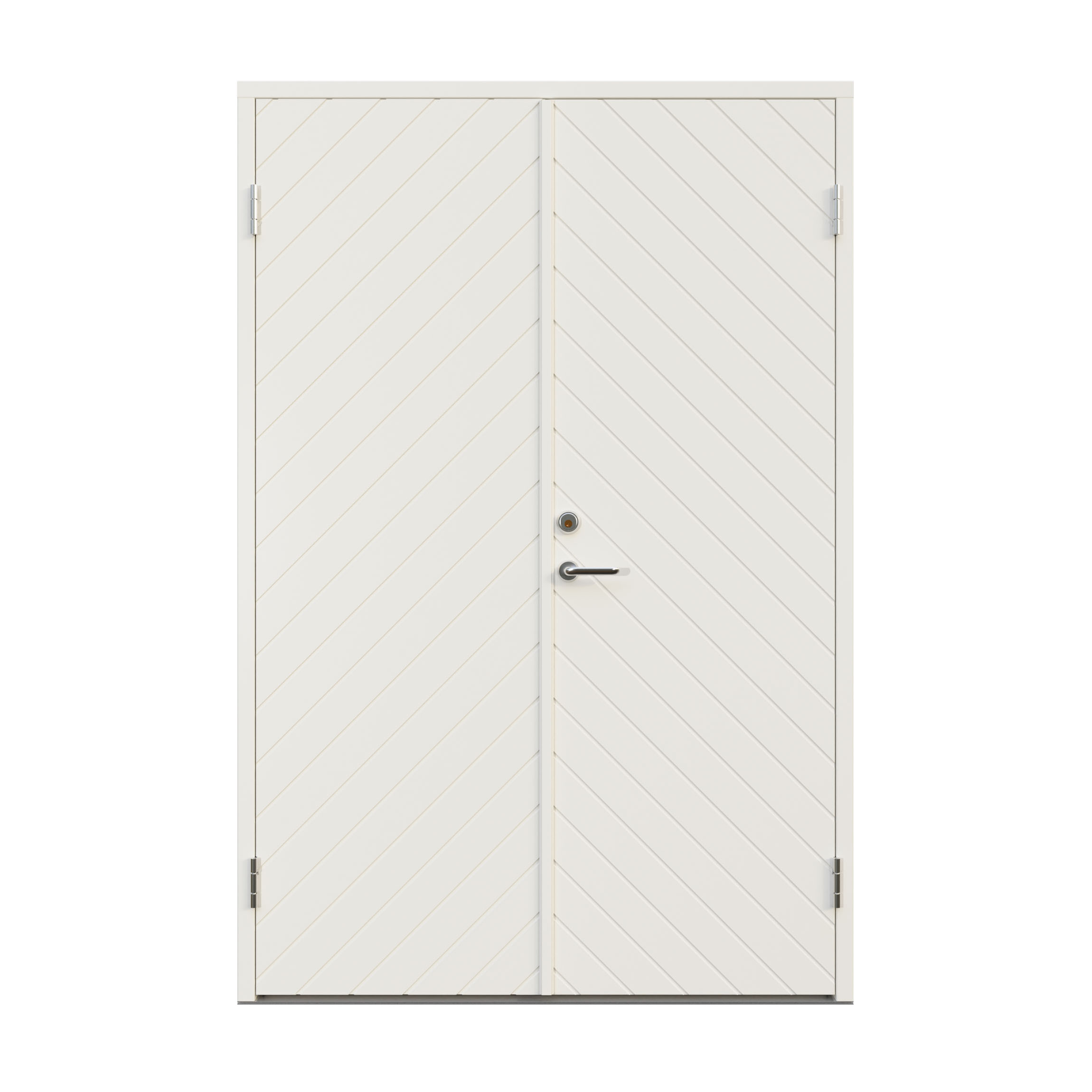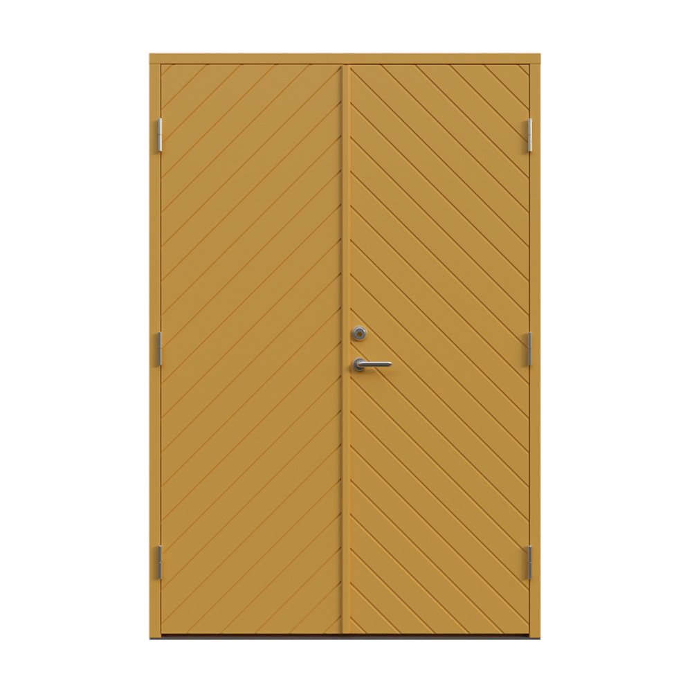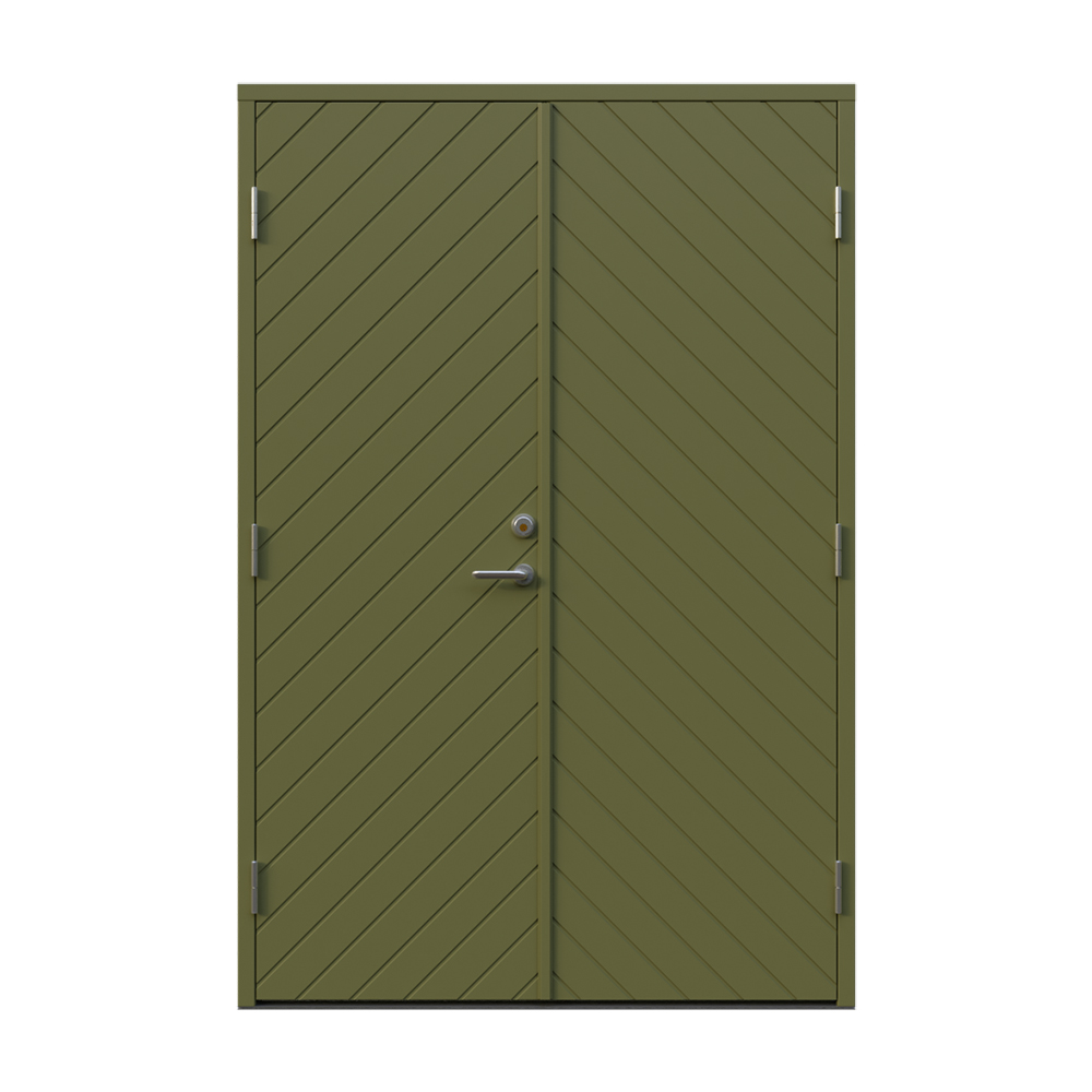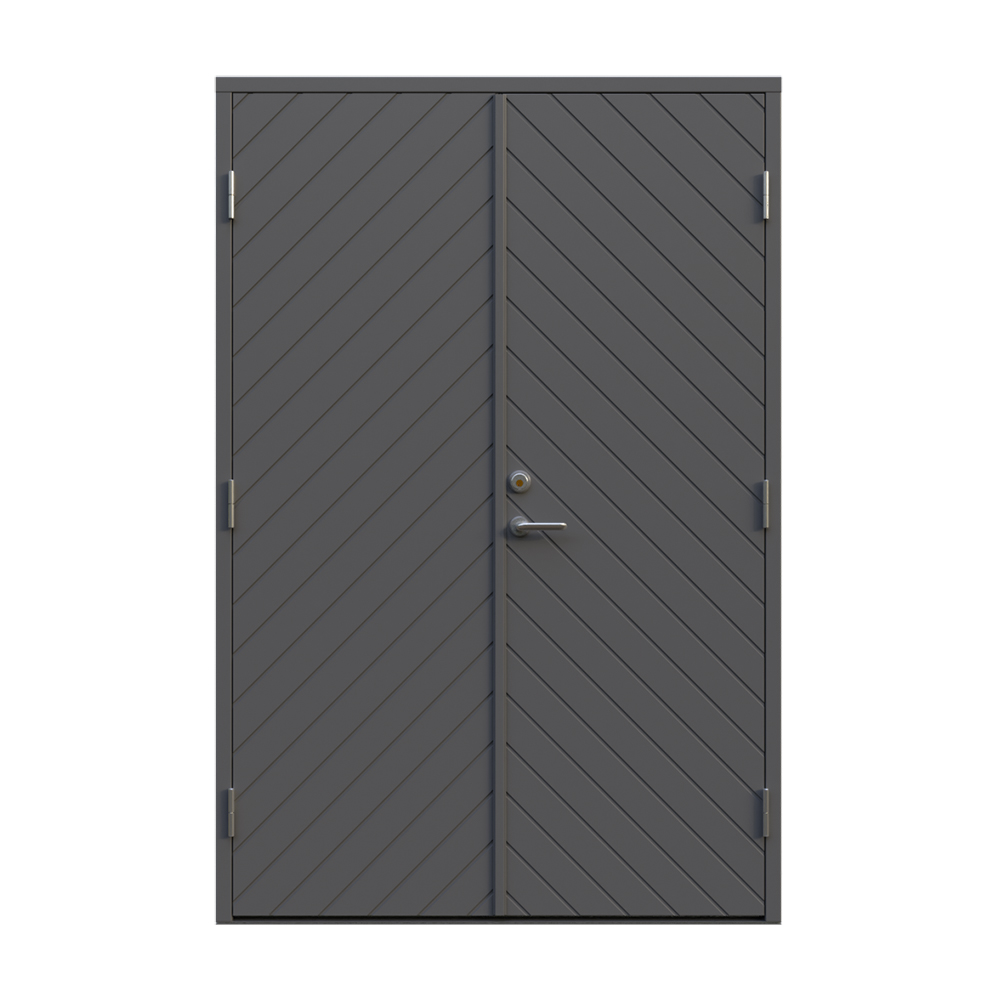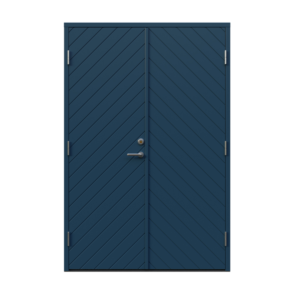 Dörren är utrustad med låskista och Justerbart säkerhetsslutbleck med dubbla säkerhetshylsor, båda från Assa.