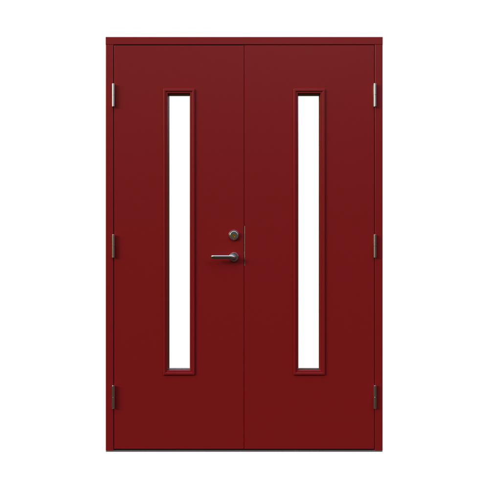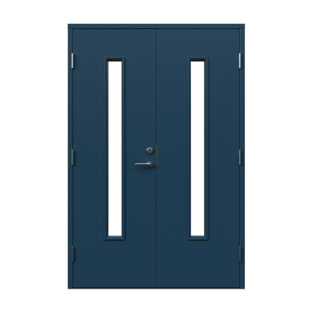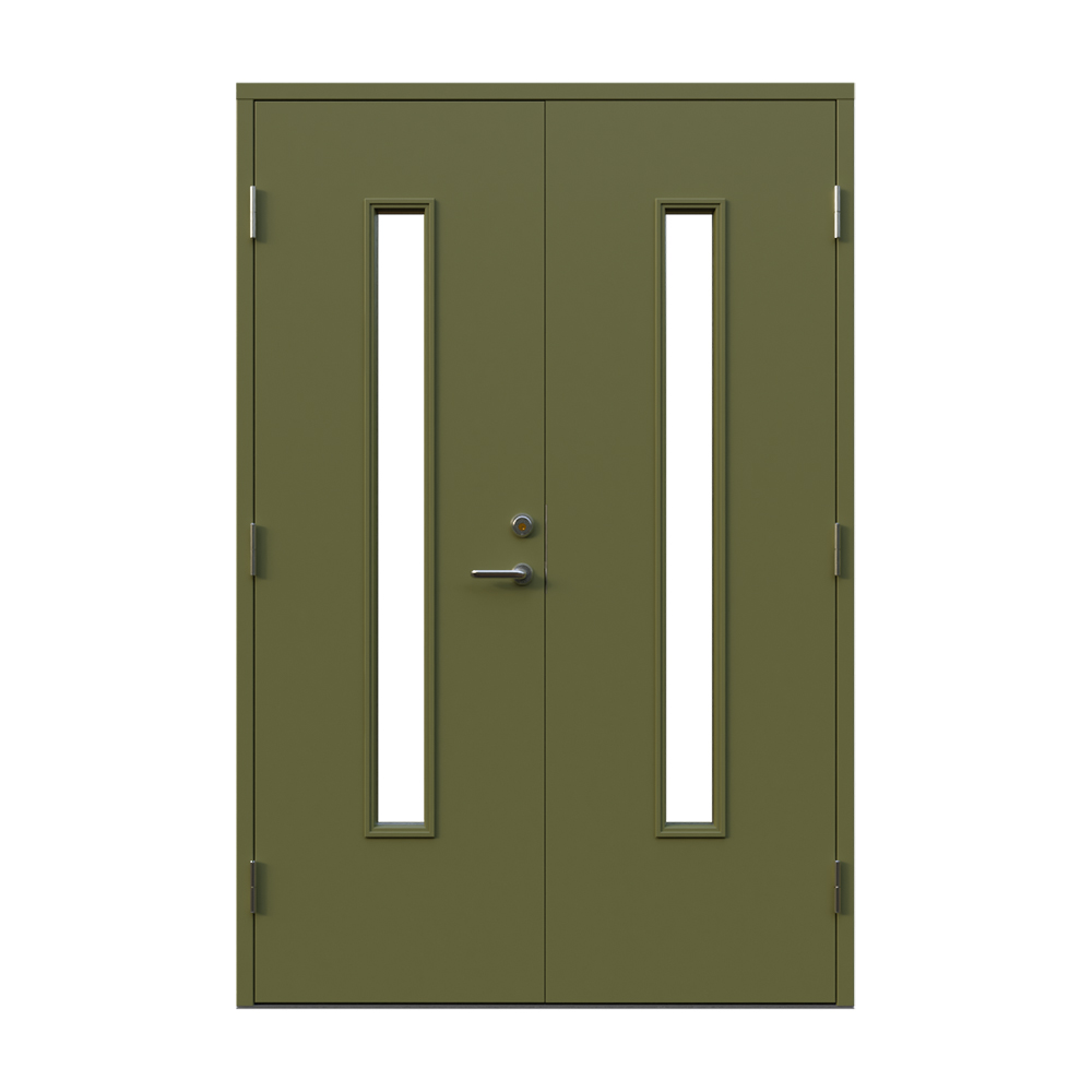 Dörren är utrustad med låskista och ett ställbart säkerhetsbleck båda från DormaKaba, en av Europas största låstillverkare. Dormakaba DL 9192 inkluderarad borrskydd och justerbart slutbleck.