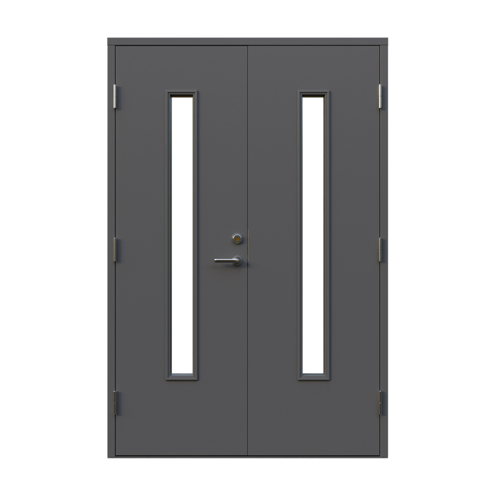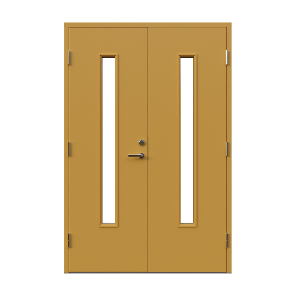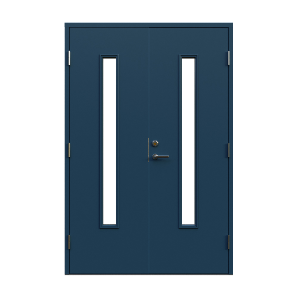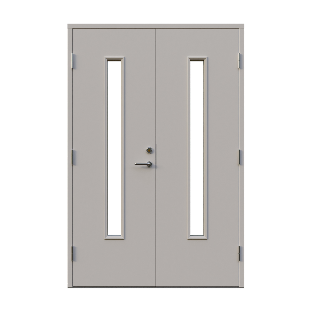 Dörren är utrustad med låskista och ett ställbart säkerhetsbleck båda från DormaKaba, en av Europas största låstillverkare. Dormakaba DL 9192 inkluderarad borrskydd och justerbart slutbleck.