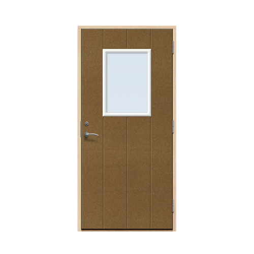 Åby, obehandlad ytterdörr med stort fönster samt utvändig spårfräsning.