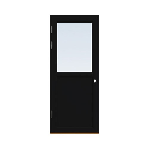 Dörren levereras med invändigt handtag i aluminium och draghandtag på utsidan. Önskar man ett låsbart handtag (med cylinder) så finns det att köpa som tillbehör.
