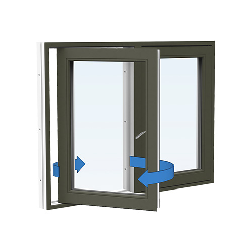 Energi aluminiumfönster med Sideswing-funktion har öppningsspärrar både i vädringsläge och i putsläge från modulbredd 6 och uppåt.