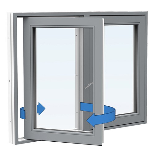 Energi Aluminium med sideswing är ett vänsterhängt fönster.