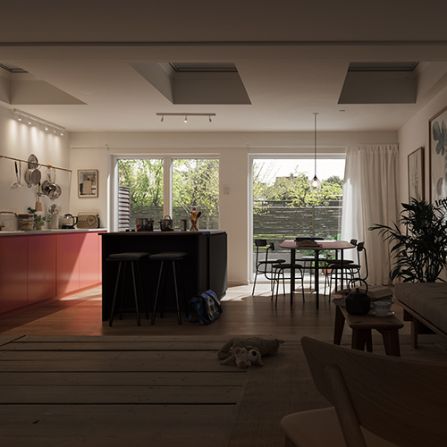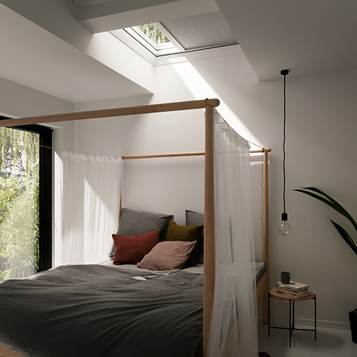 Velux elektriska dubbelplisségardiner för takfönsterkupoler ger en enastående kontroll över ljuset och förbättrad isolering. De har en slim design och inga synliga snören, så de är ett attraktivt val för alla rum. Gardinerna, som monteras enkelt från insidan, manövreras med en behändig fjärrstyrningsenhet och är io-homecontrol®-kompatibla.
