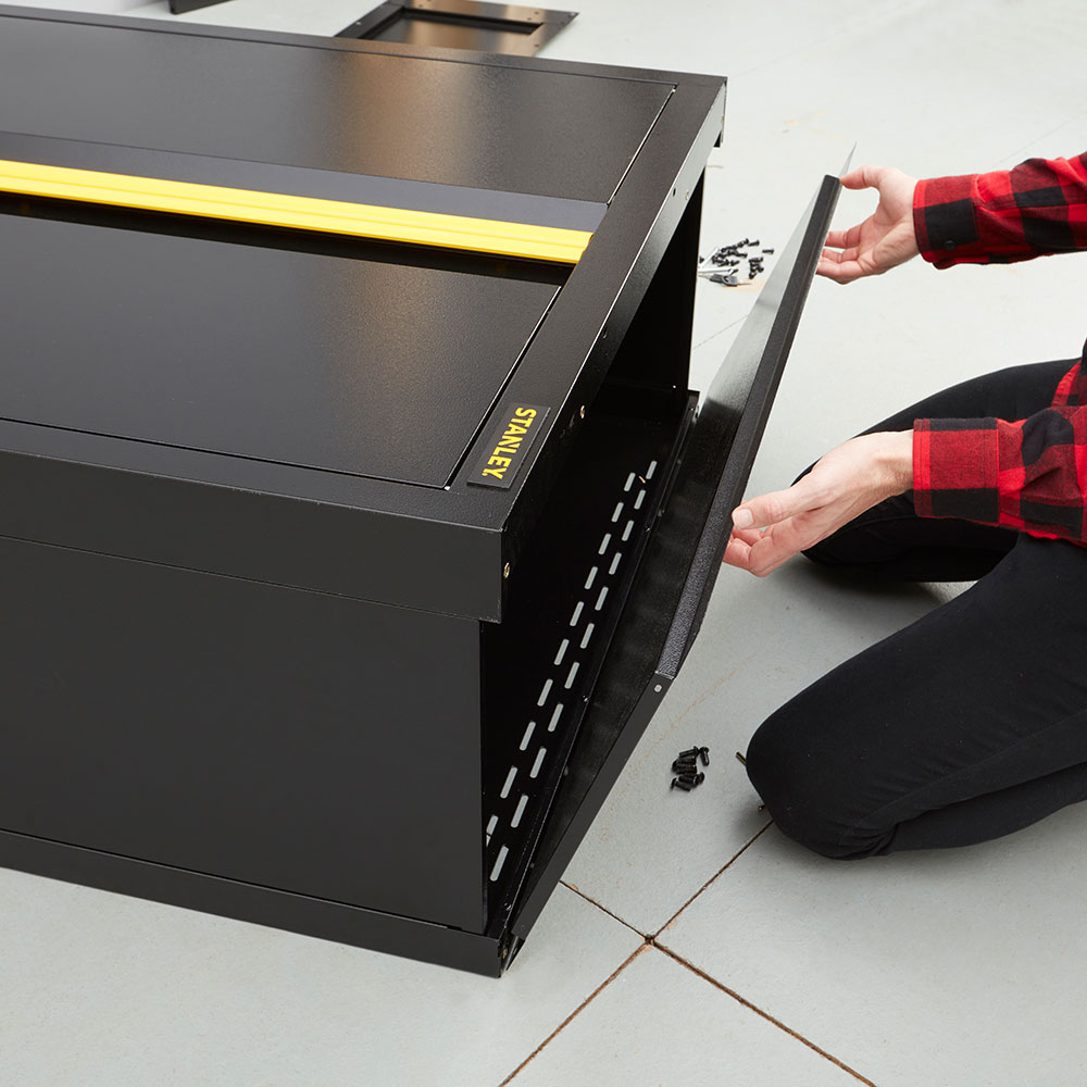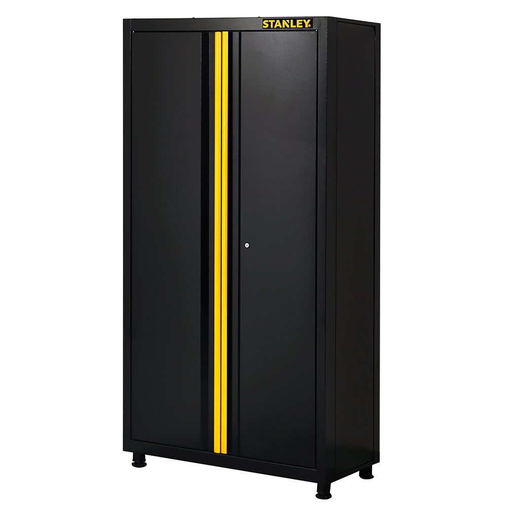 Robust högskåp från Stanley med två dörrar, tre hyllor i vardera dörr. Kan bära upp till hela 68 kilo i vikt.
