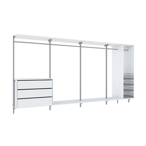 Inredning Mix Praktisk Högskåp är en garderobsinredning som ger dig möjlighet till både lång- och korthäng. Vanliga lådor och trådbackar dessutom skapar struktur i garderoben.