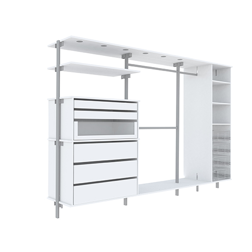 Inredning Mix Komplett Högskåp är en garderobsinredning för dig som behöver mycket lådor och långhäng.I utvalda lådor finns det dessutom lådindelare, skoinredning och lådmattor. Möjligheterna för lång och korthäng ökar om du väljer 3 eller 4 sektioner. Garderoben är upplyst med LED-belysning som gör din garderob lättöverskådlig.