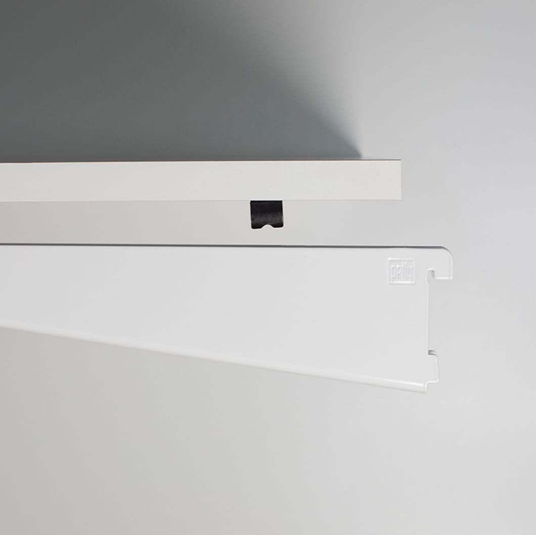 Med dessa fästen monterar du smidigt din trähylla på konsoler. Du skruvar enkelt fast fästena på trähyllan och trycker sedan ner den i konsolerna.
