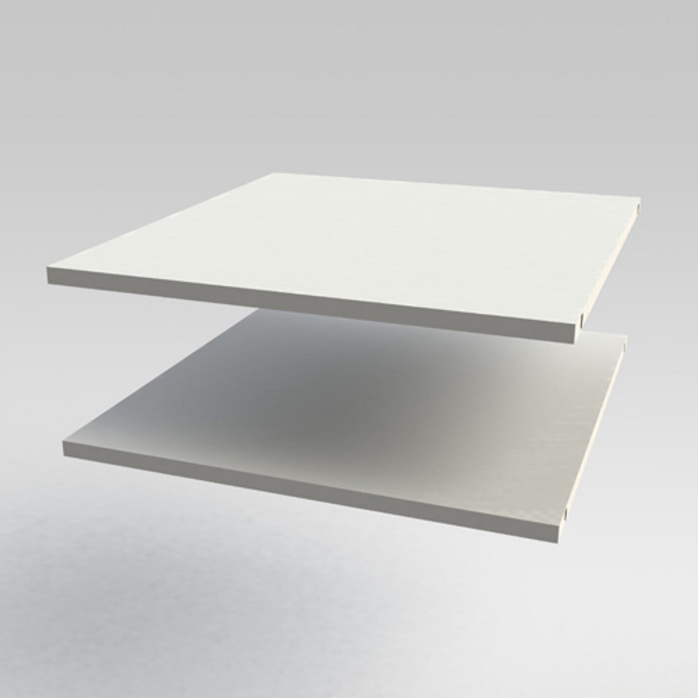 Sats med två fasta hyllor till Garderob Pelly System. Hyllorna är tillverkade av 16 mm melaminbelagd spånskiva och kantade på en sida. Inklusive beslag. Finns till grundstommarna 40, 50, 60 och 80.
