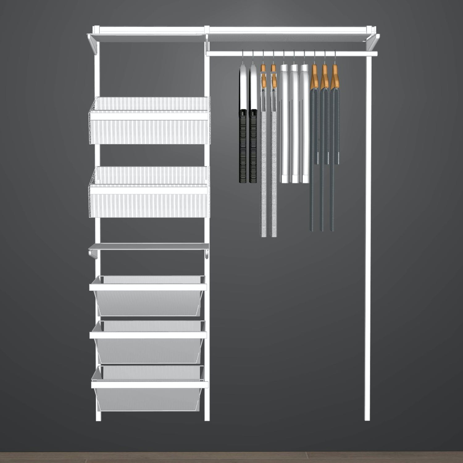Komplett förvaringslösning från Pelly System med trådhyllor. Denna lösning kan anpassas mellan 1200-1400 mm och du kapar enkelt hyllor och bärlist till dina exakta mått.